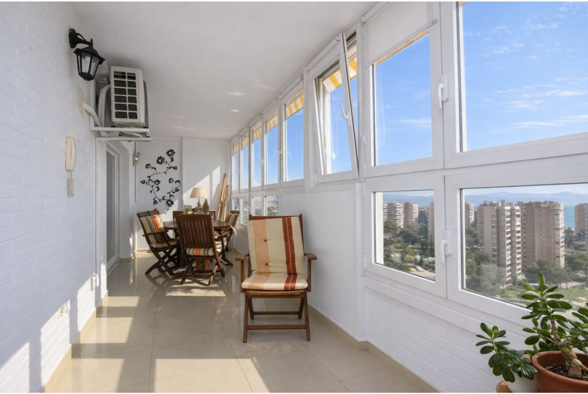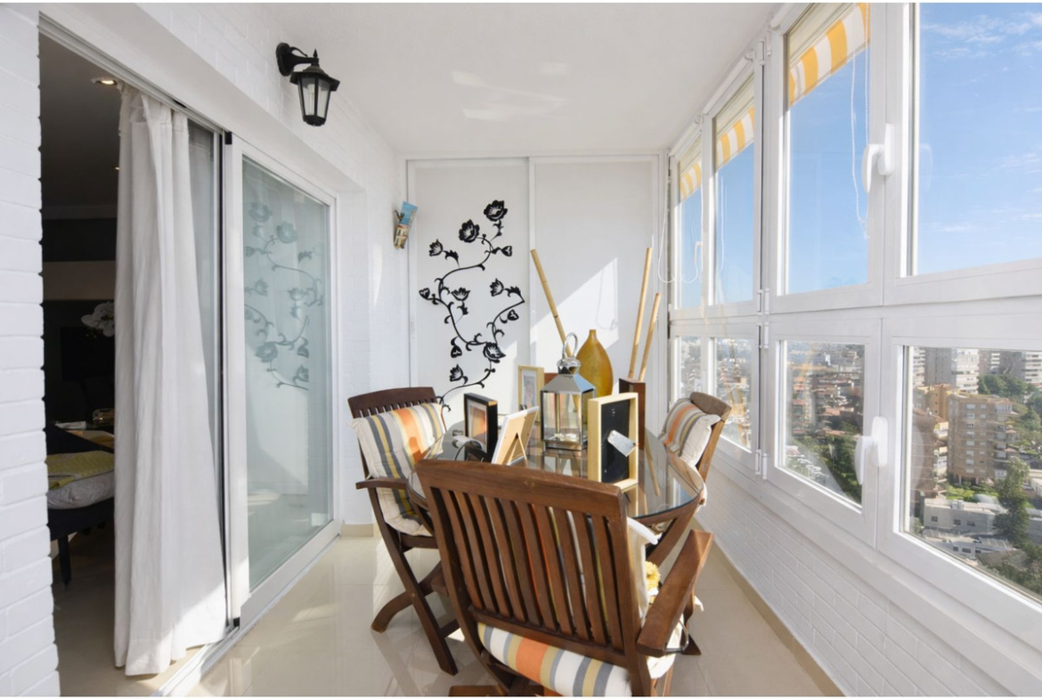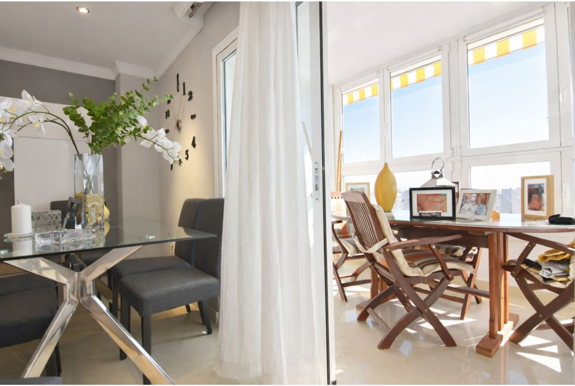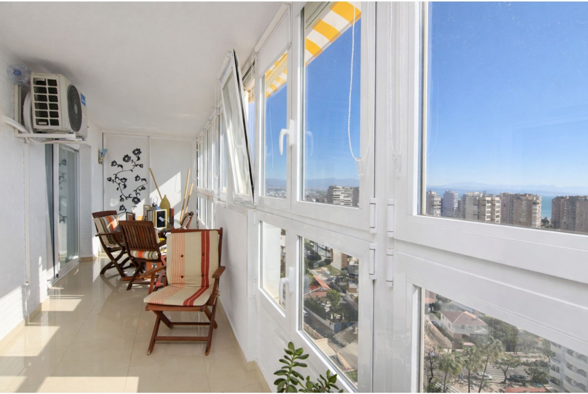 There are 3 bedrooms, 2 of which have fitted wardrobes, a spacious bathroom (originally 2) with the possibility of re-dividing them. The terrace is spacious and sunny with wonderful views of the Mediterranean Sea and the Bay of Málaga. The residential complex features a concierge, elegant and well-maintained communal areas, a communal swimming pool and direct access to the beach. This property is sold with a private parking space located in a nearby building.