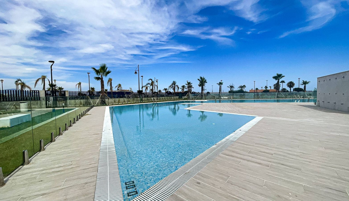 The complex offers a swimming pool, gym, co-working area, landscaped gardens, underground parking and storage rooms. Direct beach access.