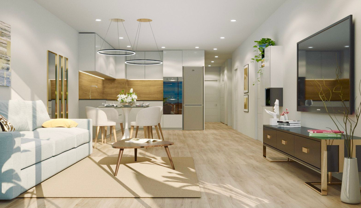 The apartments have large living rooms, 3 spacious bedrooms and are fully equipped with walk in wardrobes / dressing rooms. There is also 3 or 4 bathrooms complete with heated floors and walk-in showers, large private terraces, ultra-modern kitchens with LED lighting throughout. The kitchen appliances will be of the top quality brand name BOSH. The bathroom sanitary ware and toilets are by the make Laufen (wall mounted). The apartments will have central air conditioning units from the brand MITSUBISHI. The Two penthouses will include spacious private solariums with BBQ with individual access to their own private swimming pools. There is also a communal area complete with another swimming pool, sauna, shower and BBQ for all owners to use. On the lower floor there is private parking available to purchase with remote controlled private closed garages.
