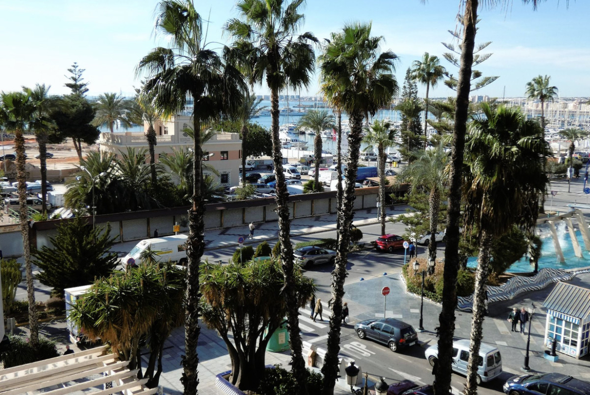 Right in the heart of Torrevieja is this large apartment with 3 bedrooms and 2 bathrooms. You also have a kitchen with a dining room. Here you also have a glazed balcony that is 8 m2, with a view of the harbor, where you can sit all year round and have the evening sun shining into the apartment.