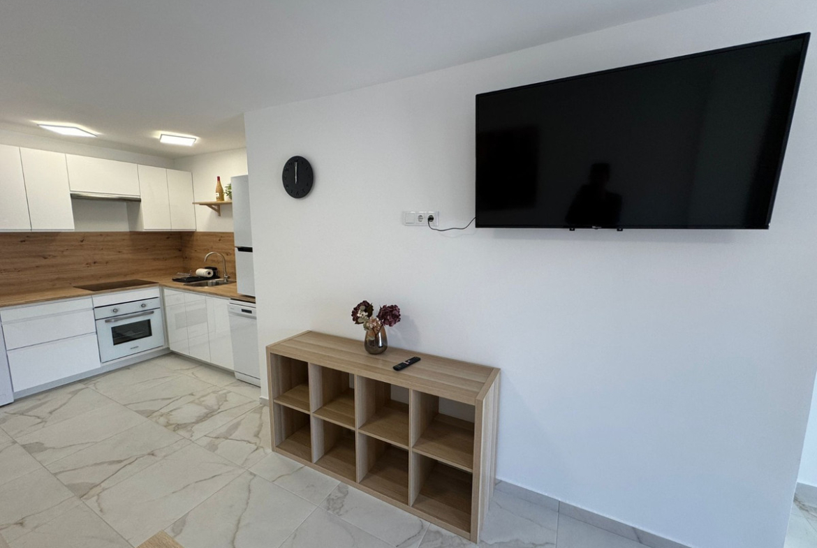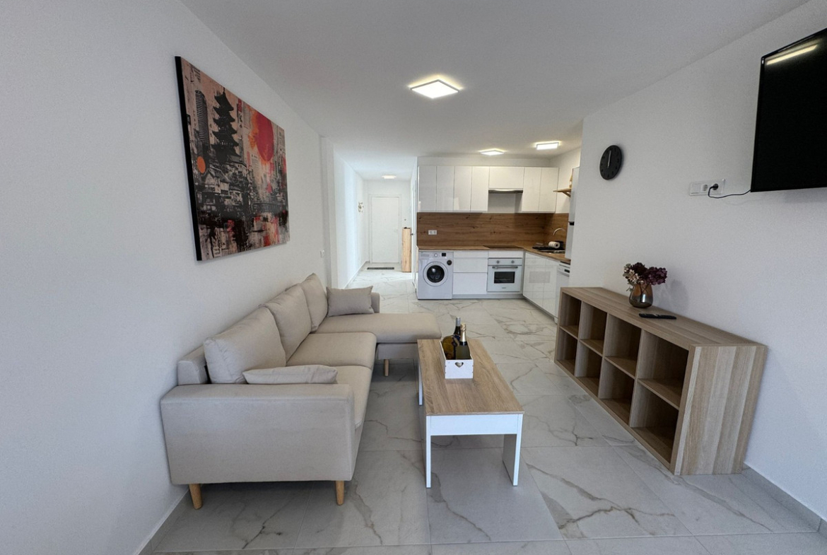 3 double bedrooms2 bathrooms with walk-in showersOpen-plan kitchen combined with living roomModern, fully equipped kitchenLiving room with balcony and sea viewAir conditioningFully renovated apartmentStorage roomElevator accessSouth-west facingNew windowsNew plumbingNew kitchen appliances