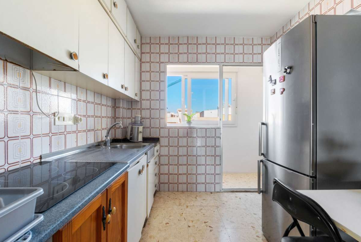 Frontline apartment on the 5th floor by the beach in Torrevieja!Located just steps from the marina, this unique 130 m² penthouse offers breathtaking, unobstructed views of the Mediterranean and Piscinas Naturales beach. Situated on the fifth and top floor, the apartment features spacious living with three bedrooms, two bathrooms, and a large terrace facing the sea – a space that will impress from the very first moment.The apartment is mostly in its original condition but has been well maintained and is clean and tidy. It offers an excellent opportunity to move in as is or to renovate and modernize to your own taste. The living room and terrace open directly to one of the best sea views in the city – an endless horizon with nothing blocking the scenery.Located right on Paseo Juan Aparicio, next to all central services, restaurants, and the beachfront promenade, this property is ideal for permanent living, a holiday home, or as an investment. The building has an elevator, and the peaceful top-floor location adds to the comfort.This is a rare gem – a true dream for lovers of sea views.Don’t hesitate to ask for more information – virtual images available!
