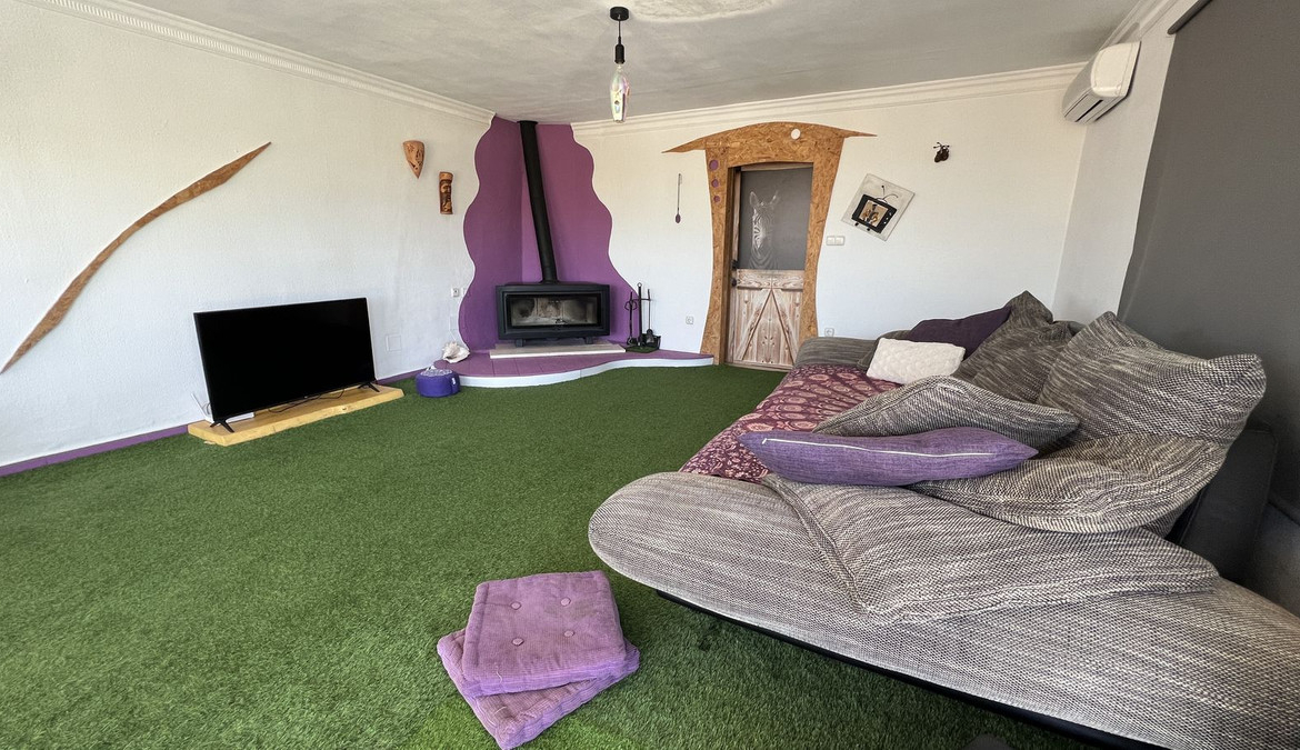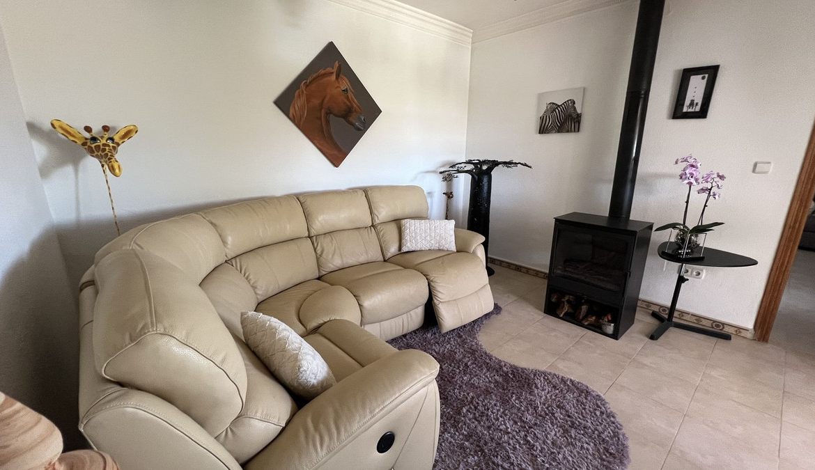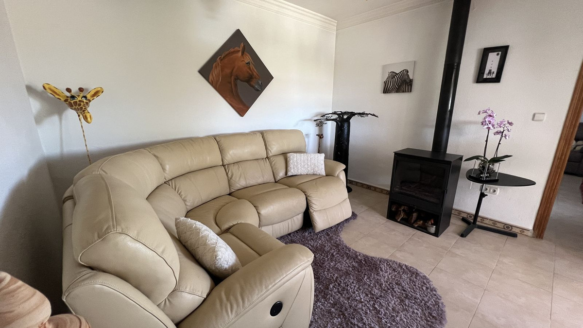• Living Room: The large living room is the perfect place to relax, with a cozy fireplace and large bay windows offering stunning views of the Guadalhorce Valley and beautiful sunsets.