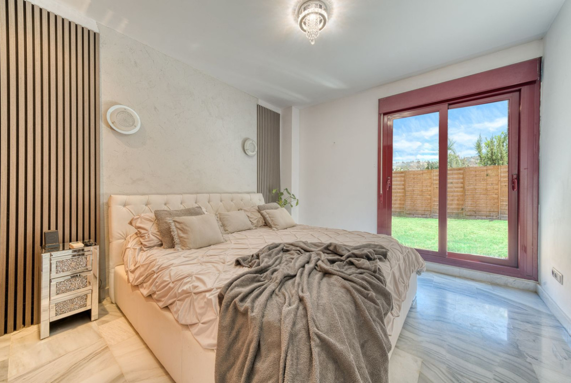 Set within a secure private community in Benahavís, this detached villa enjoys peaceful surroundings, open countryside views and excellent connections. Marbella’s vibrant centre and Puerto Banús are only minutes away, with Estepona reached in under 15 minutes. Designed for both full-time living and holidays, the villa features an open plan lounge and dining area with a working fireplace, a brand new fitted kitchen and a separate utility room. Sliding doors from the living space lead onto a covered terrace, the perfect spot for outdoor dining, entertaining or relaxing in the private Jacuzzi.