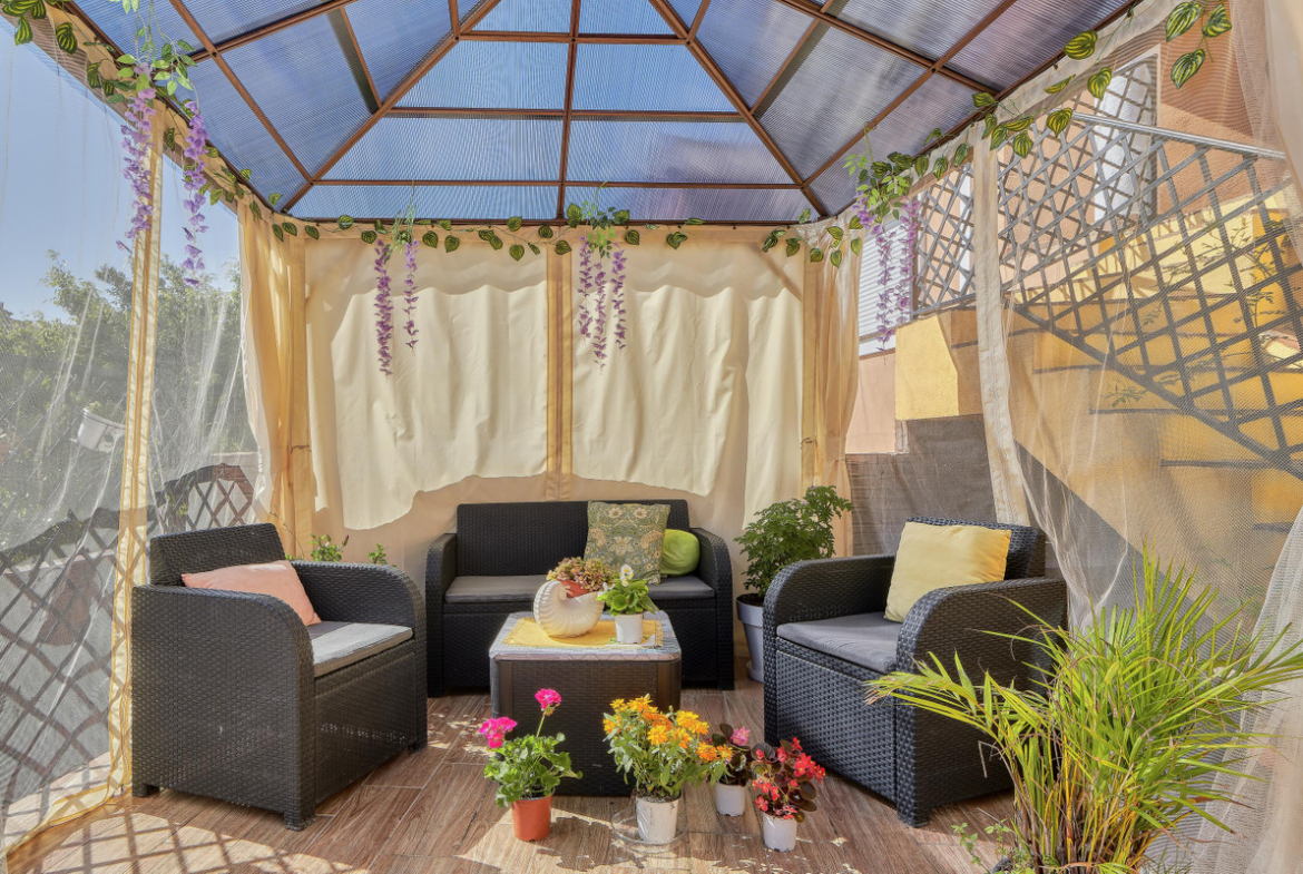 3 terraces: a lovely outdoor space on the ground floor, a spacious terrace on the first floor, and a rooftop terrace (ático)