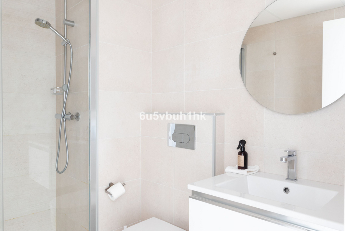 Upstairs, there are two bedrooms: one with a bathroom in the hallway and the other with an en-suite bathroom and private balconies on both sides. On the top floor, a stunning rooftop terrace awaits, offering sea views and endless possibilities for design and enjoyment.
