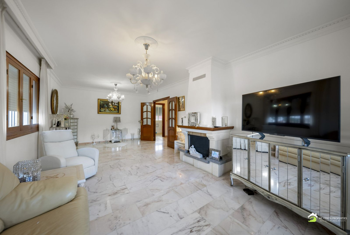 The primary living spaces are all located on one level, ensuring easy accessibility and a seamless flow throughout. You’re welcomed into the home via a generous covered terrace that leads into a spacious entrance hall, beautifully finished with marble flooring that extends throughout the main floor.