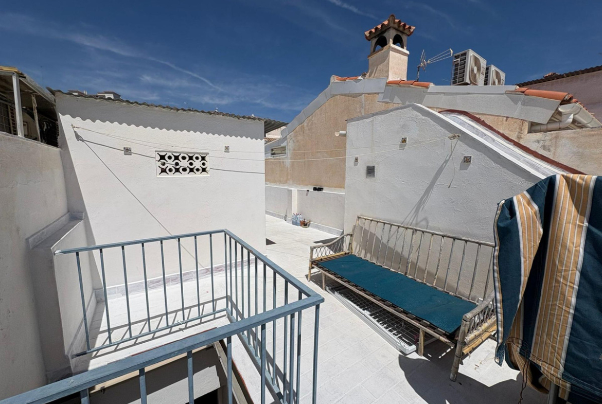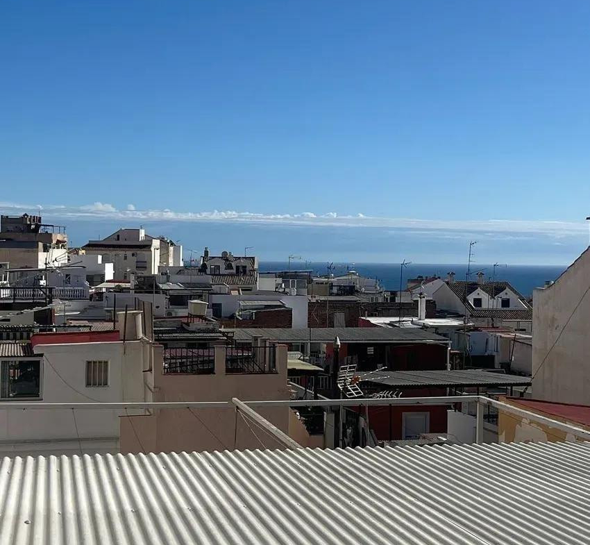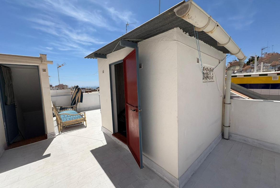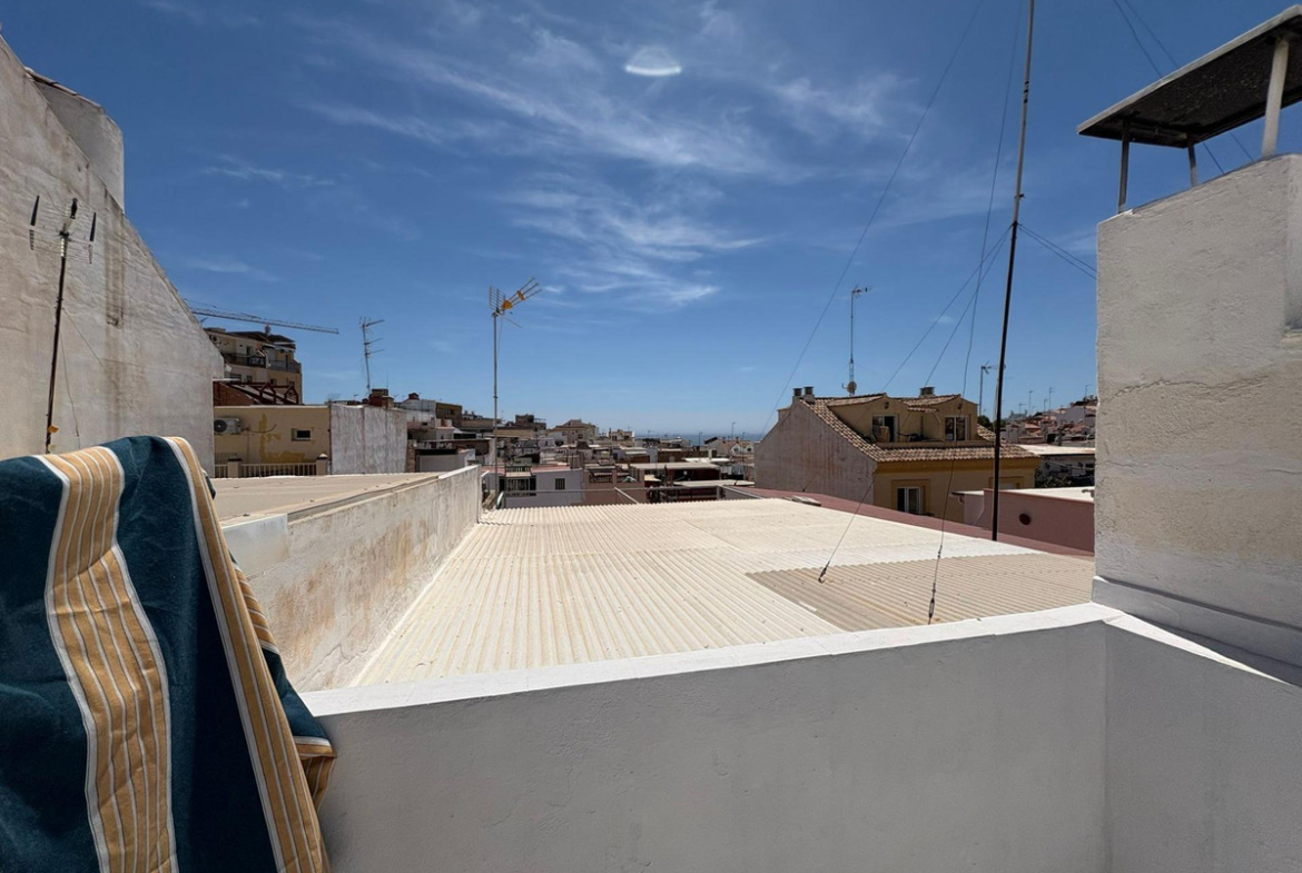 The property is distributed over two floors plus a spacious rooftop terrace. On the ground floor, you'll find one bedroom, a small bathroom, a cozy living room, and a functional kitchen with access to a small patio. The second floor features two bright bedrooms and a full bathroom. The terrace, approximately 45 m², includes a laundry room and boasts beautiful sea views, making it the perfect space to relax, enjoy outdoor dining, or create a chill-out area.
