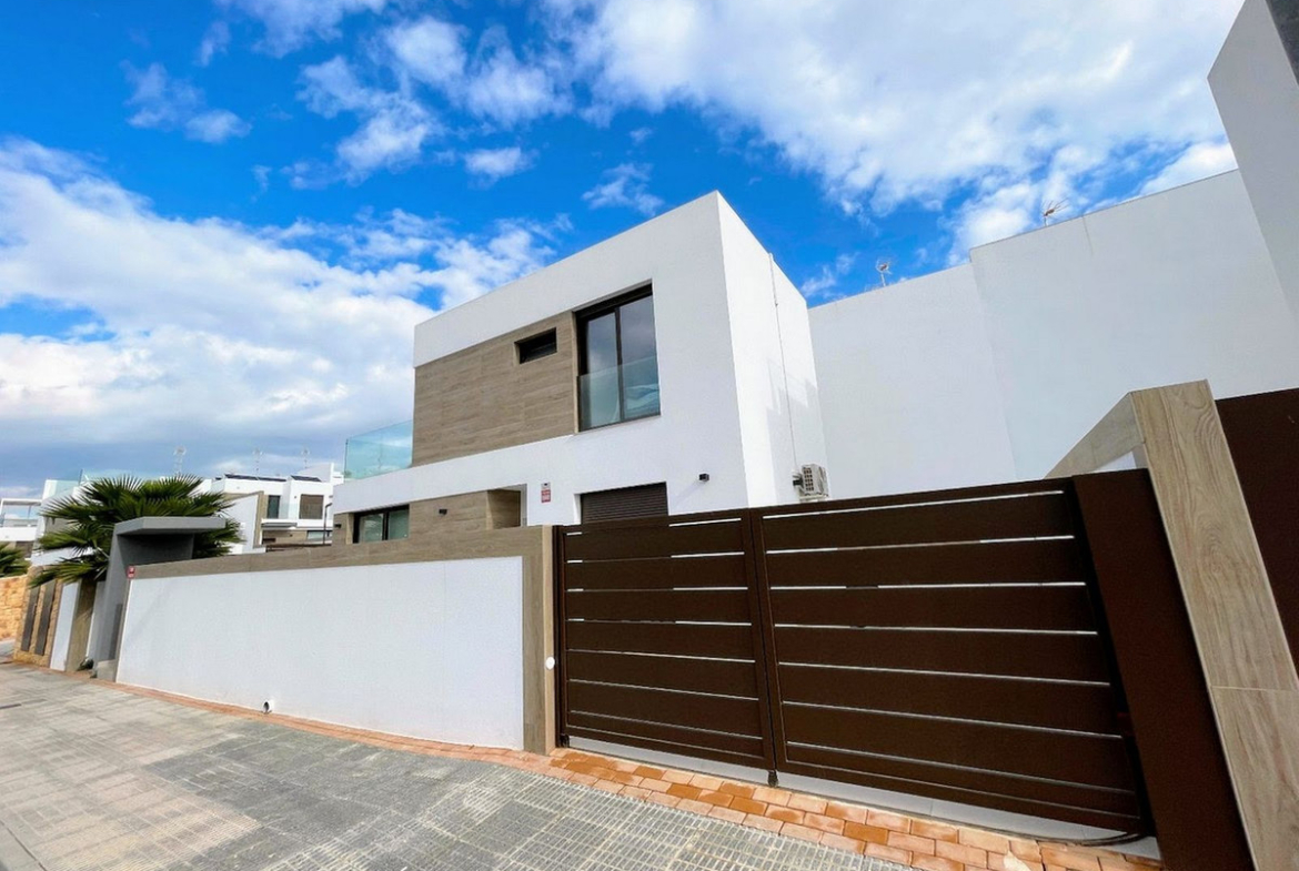 Take a look at the Newly Built Detached Villa located in Benijofar a traditional Spanish town, between Ciudad Quesada and Rojales. The property consists of 3 bedrooms and 3 bathrooms, living/dining area and a fully fitted kitchen. The property benefits from terraces, air conditioning, electric blinds, off road parking and an Internal stairscase that lead down to the spacious under build with lots of possibilities for additional storage, living accommodation, games room, cinema room, etc…