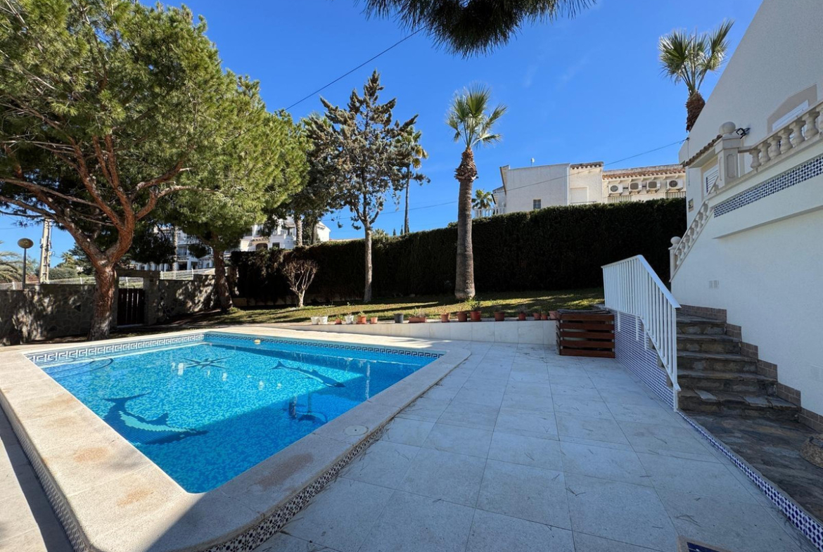 For sale Villa. Location Cabo Roig (ALICANTE). Total area 172.00 m2. Number of rooms – 3. Number of bedrooms 3. Number of bathrooms 2. Year of construction 1986. Distance to the sea 800 m. Plot area 890 m2. Orientation South-East.