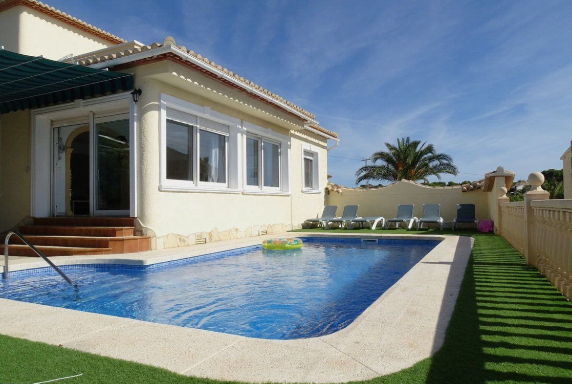 Located on a 785 m² plot, this 200 m² villa offers the perfect environment to enjoy comfort and tranquility. The property boasts stunning views of the sea, the Peñón de Ifach, and the salt flats, making it a unique place to live or vacation. Its exterior features an 8×4 m² pool surrounded by extensive landscaped areas, creating an ideal space for rest and relaxation. Additionally, the villa has its own water well, allowing for better water usage for the garden and other needs.