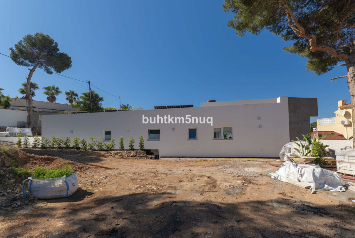 Located in one of Calpe`s most serene and established areas, this minimalist villa presents itself as an architectural design where light and simplicity take center stage. Access to the property is comfortable and seamless, leading to a home distributed entirely on a single level a highly sought-after feature that guarantees comfort and a complete connection with the surroundings.~Upon crossing the threshold, the interior surprises with its complete finish, furnishings, and contemporary decor, making it ready to move in immediately. Large windows act as glass walls, integrating the Mediterranean light into a spacious and functional living room. The sleeping area comprises three large bedrooms and two bathrooms, the latter equipped with underfloor heating to ensure maximum comfort year-round.~The heart of this property lies in its outdoor potential. While the interior is a finished haven, the terraces, garden, and swimming pool are awaiting completion. This offers the new owner the strategic advantage of putting the finishing touches on the leisure areas, choosing materials or details that transform the pool area into a personalized oasis.~Its location is unbeatable, strategically situated between the vibrant center of Calpe and the exclusive coast of Benissa. Just steps from the property lie the turquoise coves of Benissa, such as La Fustera, and the wide range of services, marinas, and sandy beaches of Calpe. Living here means enjoying the tranquility of a well-established residential neighborhood without sacrificing proximity to the best spots on the Costa Blanca.