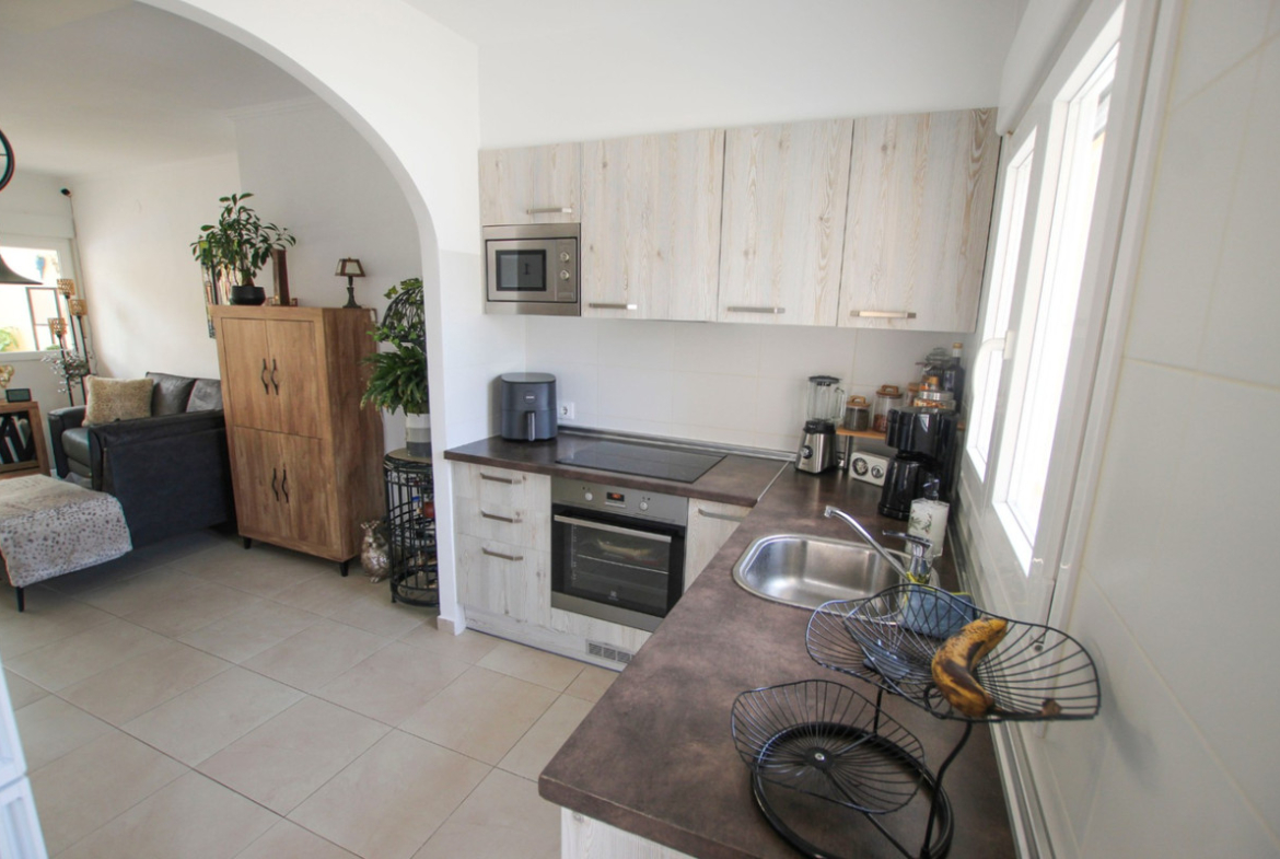 Spacious home with 3 bedrooms, equipped with shutters for added comfort and privacy2 modern bathrooms, including one with a walk-in shower for a luxurious experienceFully equipped open kitchen with all necessary appliances, perfect for cozy cooking eveningsAir conditioning in the home, for a pleasant indoor climate all year roundParking space for up to 3 cars, ideal for families or visitorsCommunal swimming pool, perfect for relaxing and enjoying the sunThis property combines practical amenities with an attractive location, making it an excellent choice for both permanent residence and vacation home. Thanks to the south-facing position, you can enjoy optimal sunshine hours and a bright, welcoming atmosphere.