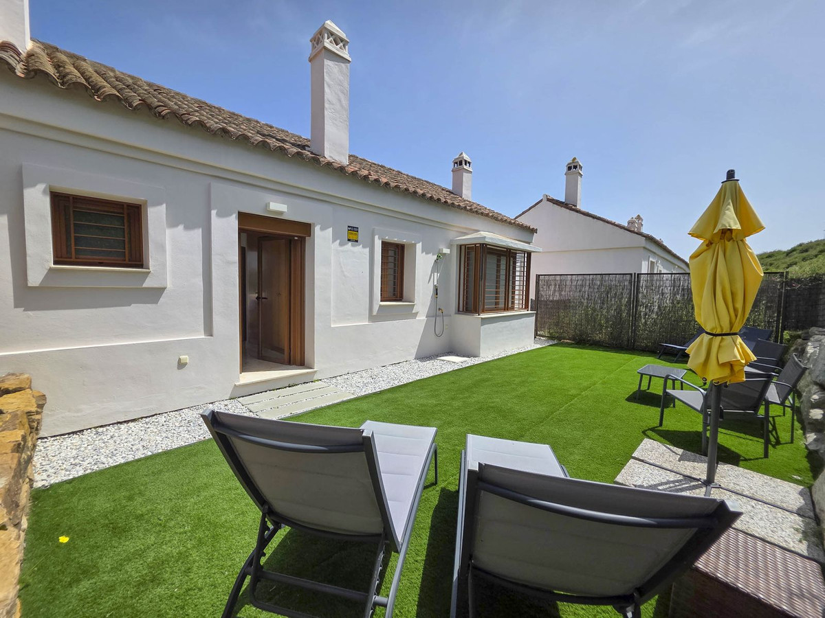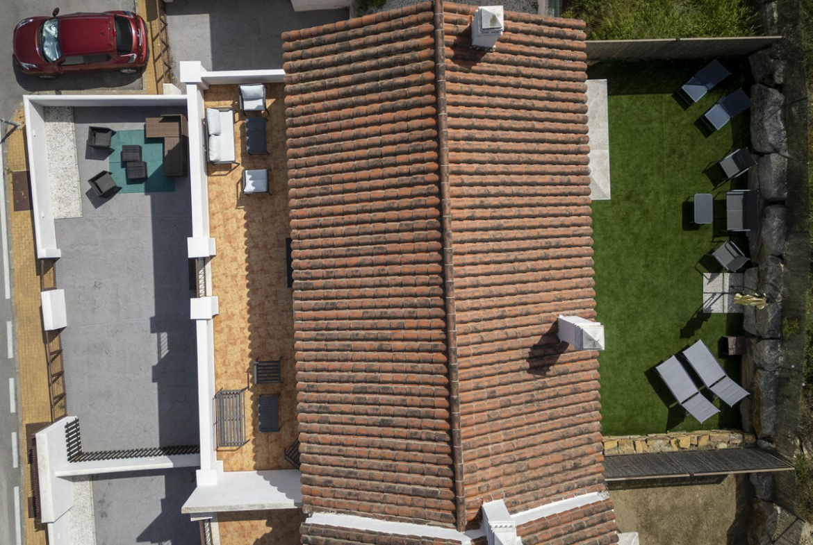 Upstairs, the home features two generously sized bedrooms, each with its own ensuite bathroom. Both bedrooms enjoy sea views and direct access to a large upper terrace that spans the width of the house and provides breathtaking panoramic views. One of the bedrooms also offers access to a large private garden, an ideal space for sunbathing, gardening, or simply unwinding in the open air.
