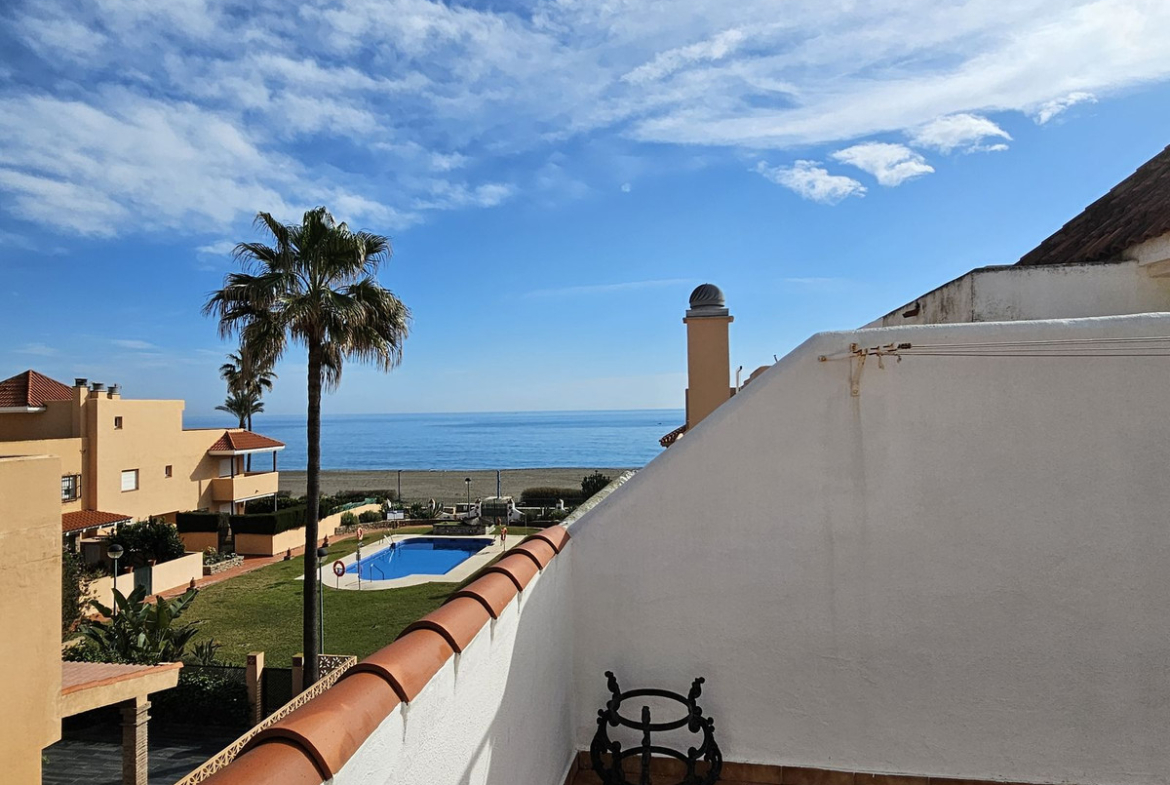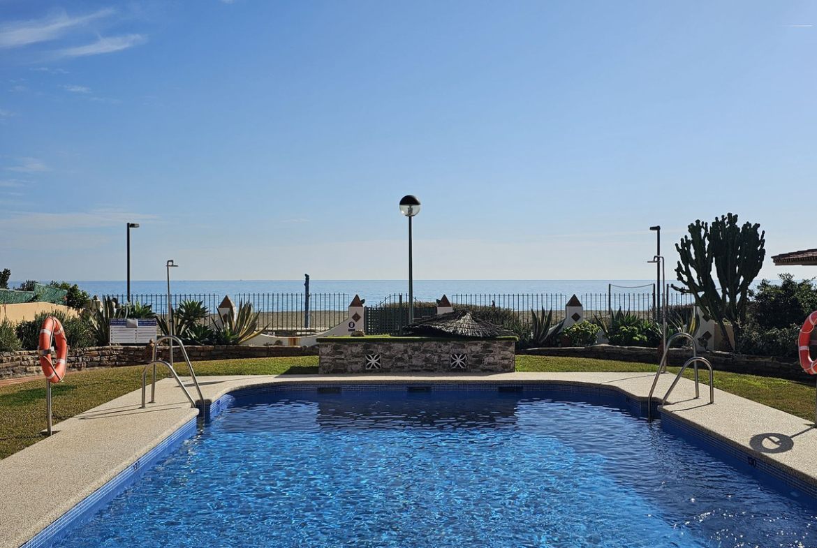 FANTASTIC SEMI-DETACHED BEACH HOUSE! This great house is located in a sought after beachfront urbanization in Casares Playa offering lovely communal gardens, a pool that is open throughout the year and direct access to the beautiful sandy beach and promenade. A short 10 minute walk along the beach will take you to the picturesque Andalucian seaside village of Sabinillas where you will find a wide selection of supermarkets, shops, tapas bars and restaurants. Everything a busy village has to offer.