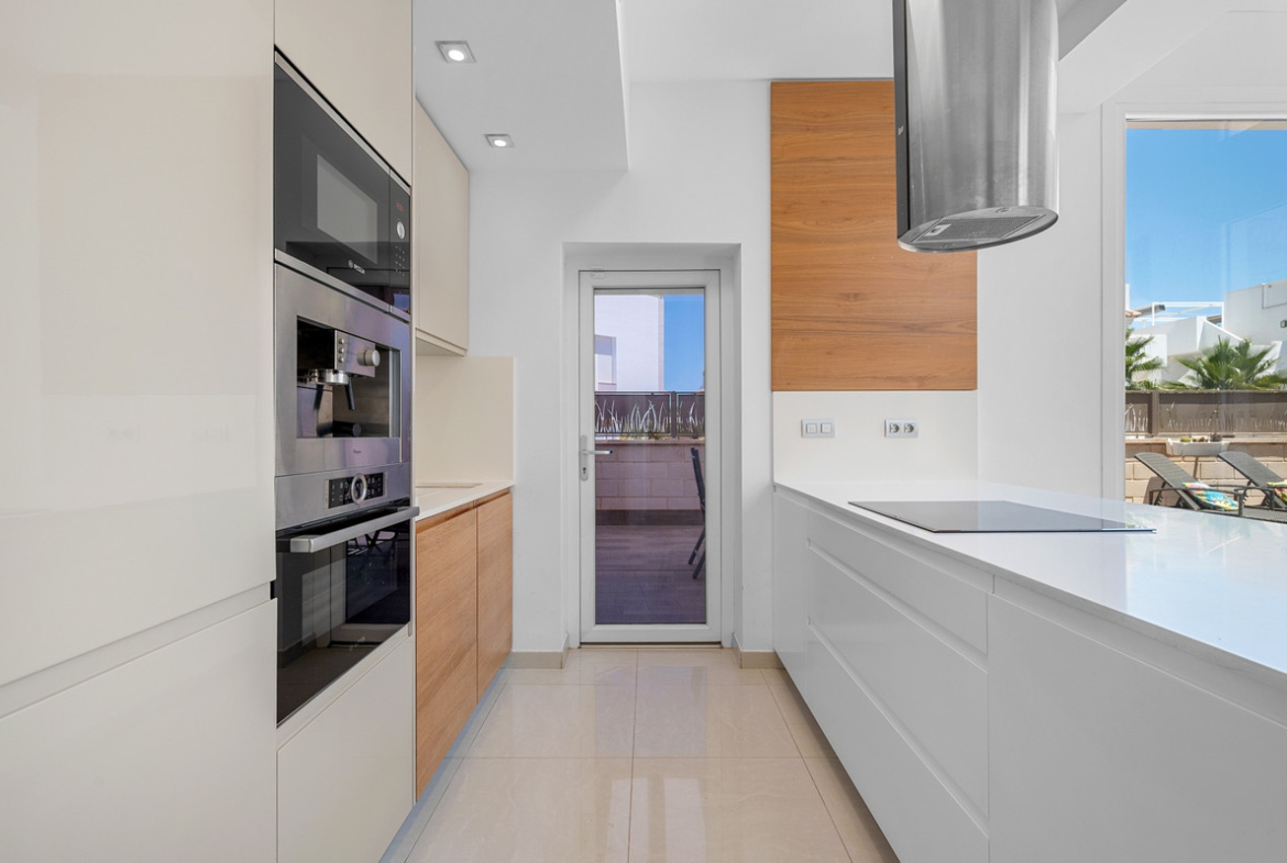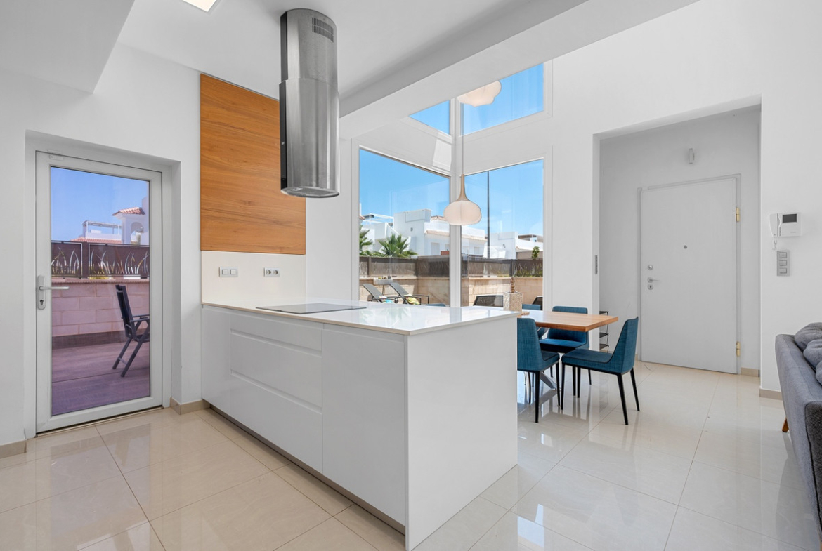 The private rooftop terrace includes a fully installed and functional outdoor kitchen with direct access from inside the house, making it a comfortable area for year-round use.
