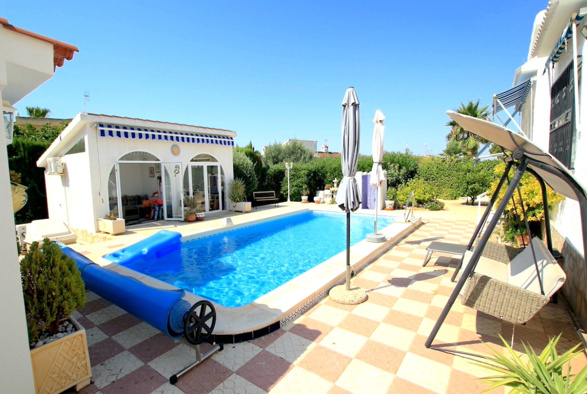 Discover this delightful detached villa for sale in Ciudad Quesada, perfectly positioned within walking distance to the vibrant Quesada high street where you’ll find a fantastic array of amenities, including shops, bars, restaurants, supermarkets, and even a fun water park!