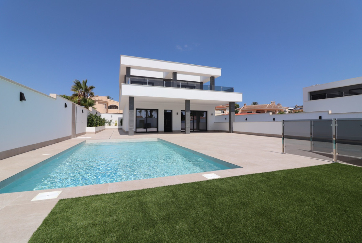 This Mesmeric, South West Facing, Key Ready, Three Bedroom, Detached Villa in Ciudad Quesada, is located in a highly sought-after area of the Costa Blanca South, within approximately a 7-minute walk to a selection of bars and restaurants, 20 minutes on foot to the bustling Quesada high street, and a short 5-minute drive to La Marquesa Golf Course. The stunning beaches of Guardamar can be reached in around 10 minutes, making this an exceptional location for both lifestyle and convenience. A true one-off opportunity, this exquisite luxury villa boasts an impressive build size of 311m² across three floors, set on a beautifully landscaped 550m² plot. Built to the highest specifications, the property offers underfloor heating throughout with individual room controls, integrated air conditioning, and pre-installations for solar panels (under build and roof) as well as a pre-installation for an electric car charging point. The ground floor welcomes you with a fantastic covered entrance terrace and a spacious open-plan living area, filled with natural light with double sliding glazed doors that open onto the front garden. A sleek, modern fitted kitchen and separate utility room provide both style and practicality. Also on this level is a generous double bedroom, with double glazed sliding doors to the garden and an en-suite shower room, along with a separate guest cloakroom. Upstairs, two further double bedrooms each benefit from their own en-suite shower rooms and direct access to an extensive sun-drenched terrace – perfect for relaxing or entertaining. The landscaped plot is surrounded by a secure wall for privacy and features a stunning 8 x 4 private pool, raised planted borders to one side and rear, raised area laid with artificial grass, and extensive tiling for ease of maintenance. A solid electric gate leads to a private driveway that descends to the vast under build – with space to park two or more vehicles or potential to be converted into additional living accommodation. The under build also benefits from internal access. This property represents unmatched quality, design, and value – a luxury home where attention to detail and modern living converge. Specifications, quality, and price will absolutely not be beaten.