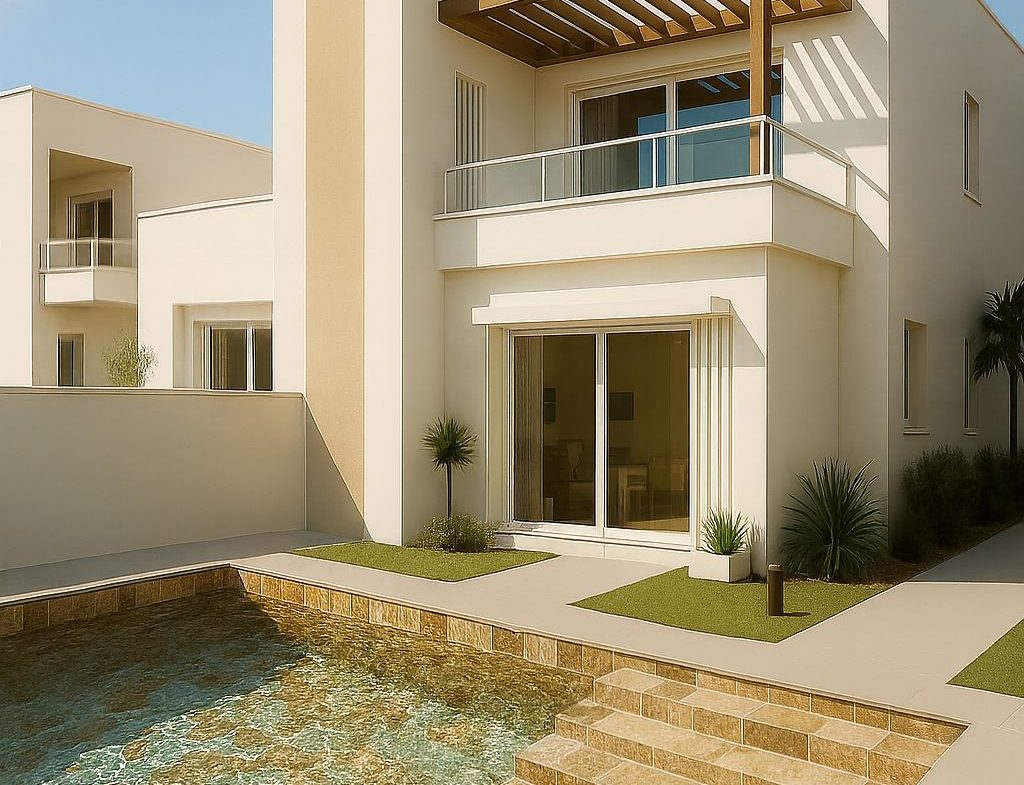 Inspired by contemporary Mediterranean architecture, the homes showcase clean lines, functional layouts, and a seamless connection between indoor and outdoor living. Large windows and terraces allow residents to fully embrace the surrounding environment and lifestyle.