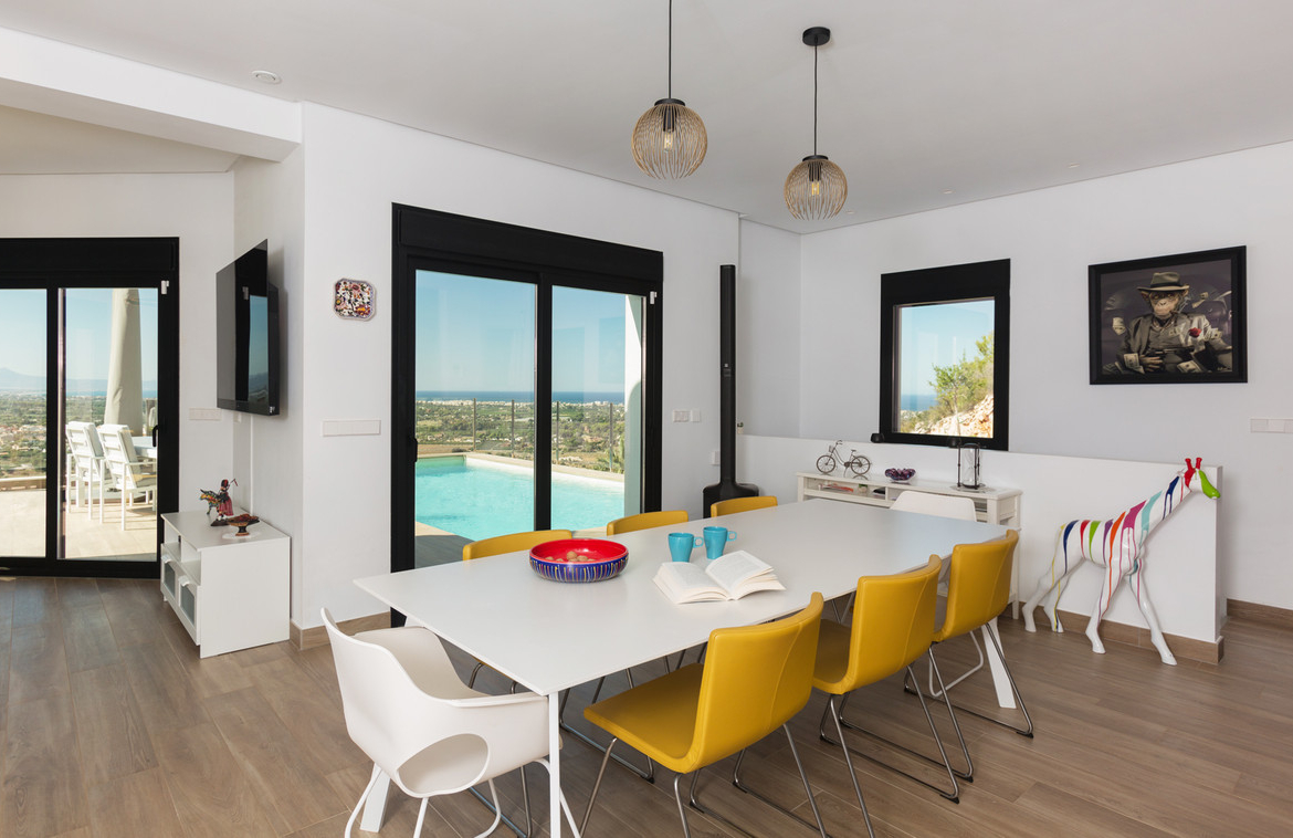 Bellevue is a sophisticated luxury villa with an elegant facade and bright light thanks to its large windows. It is located in one of the most beautiful locations in the charming town of Dénia, offering fantastic panoramic sea and mountain views, as well as its tranquility and natural surroundings.