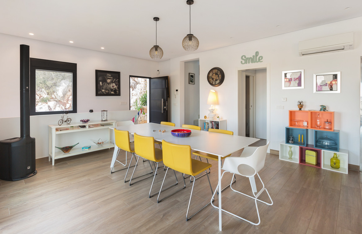 A spacious, bright living room with open kitchen and dining area are at the same level as the terrace and pool, connected by large windows, providing the necessary functionality and comfort to fully enjoy everyday life and shared moments. An office space decorated with the same natural mountain stone is the ideal place to work from home in peace and the three bedrooms are ideal for hosting family and guests.