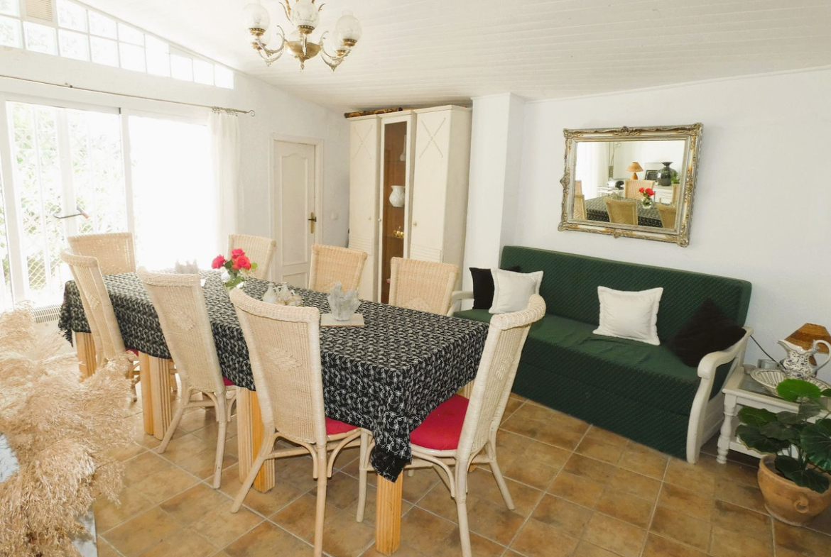 Here you have a wonderful old finca with 17,758 square meters of land. The handicap-friendly residential building has high ceilings and is approximately 146,5 square meters in size. 3 large bedrooms, living room, kitchen and dining room and 2 toilets with shower. There are 4 AC heat pumps and a fireplace. The kitchen is well equipped with fridge, freezer, oven, microwave, induction hob, dishwasher and fan. A 7 kg washing machine is in the garage.