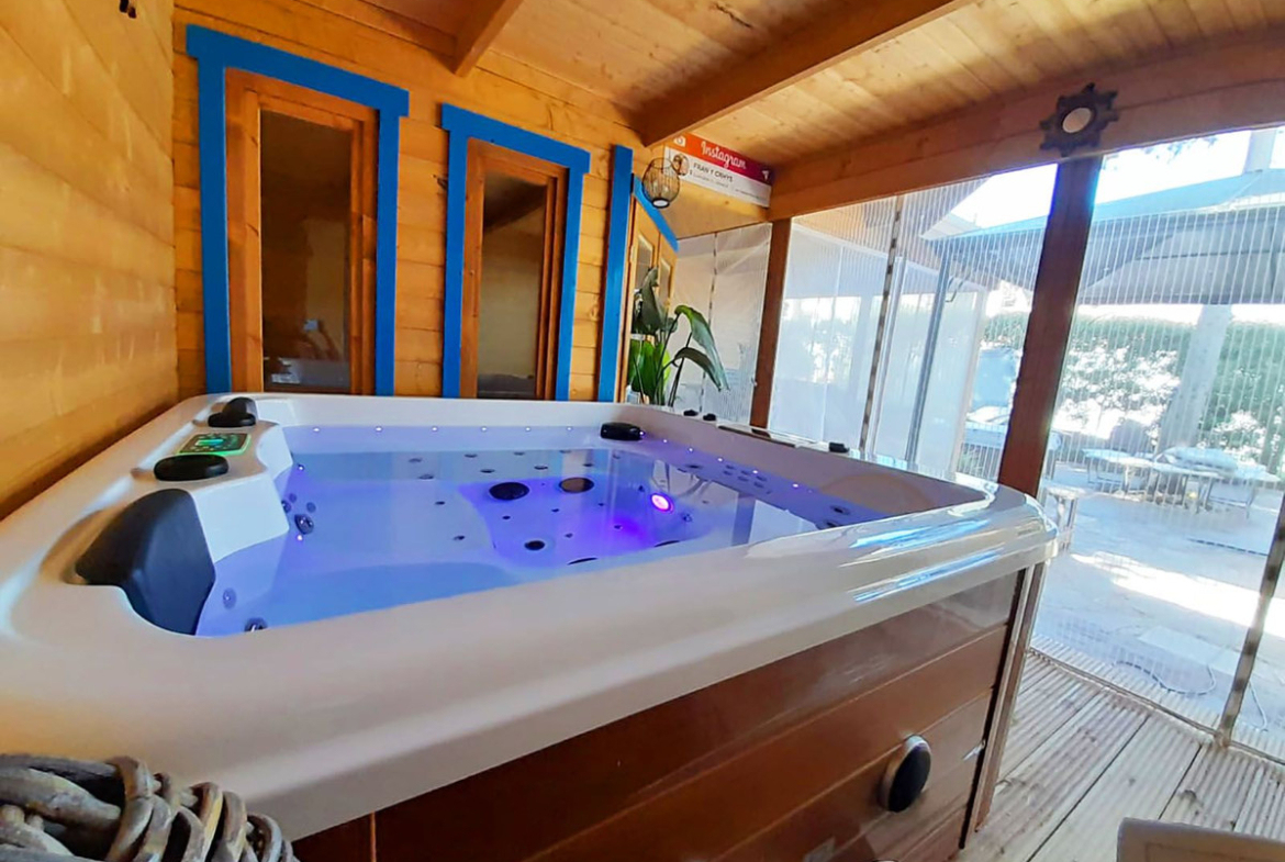 • Jacuzzi for 5 people on a wooden porch, accessible from the master bedroom.