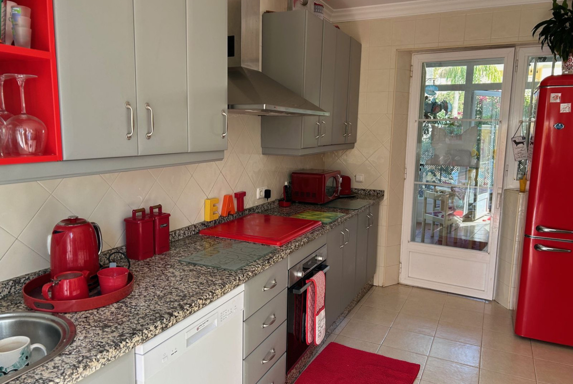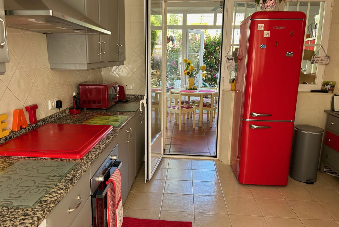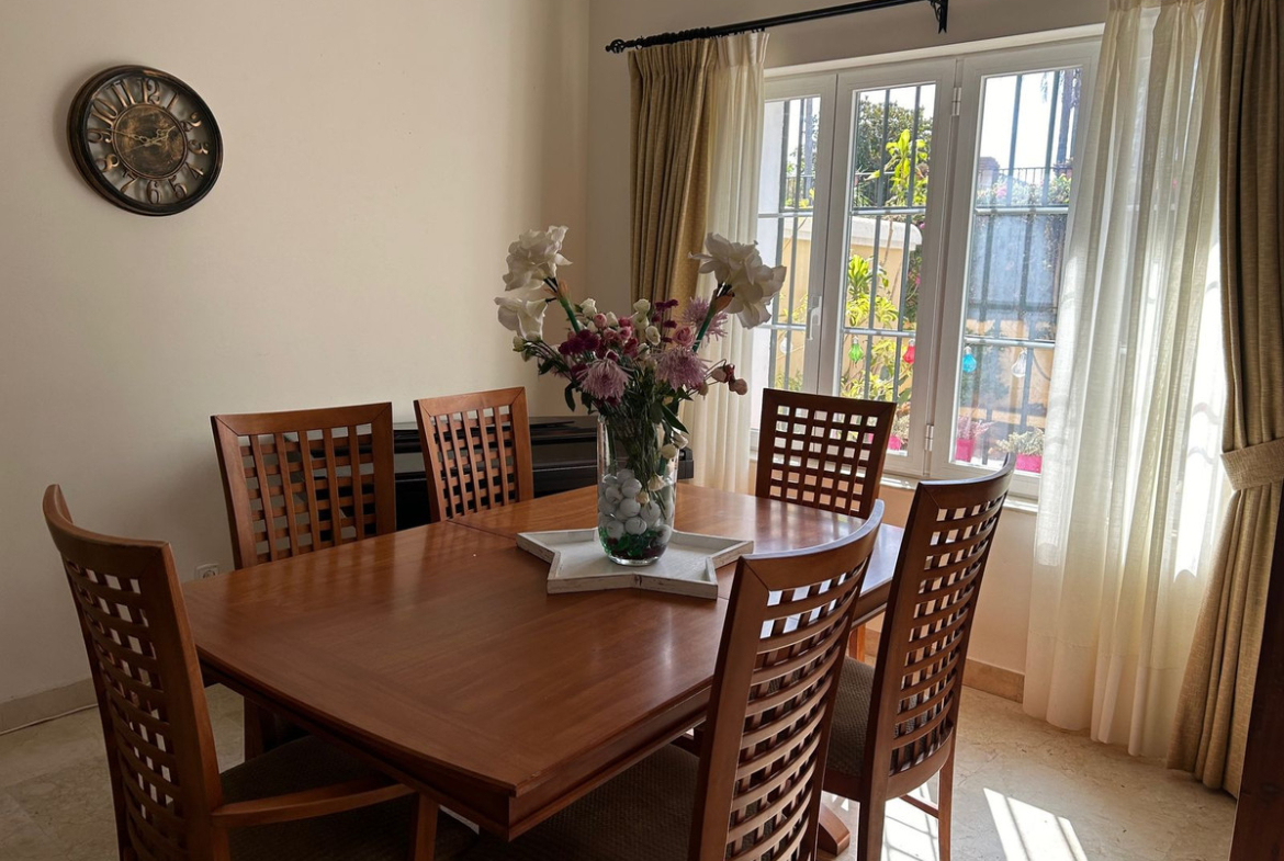 Excellent and spacious, quality built 3 bedroom, 2.5 bathroom, semi detached house with a private garden. It is located in a small community of just 10 houses and is within a 15 minute walk to the shops, restaurants and the beach in Elviria! The complex is very well maintained with a communal pool and garden area. On entering this beautiful house you will find a separate fully fitted kitchen, a spacious enclosed terrace, large living and dining room plus the guest toilet. Upstairs there are three double bedrooms plus two bathrooms. The very spacious master bedroom has a large en suite bathroom. The house is bright throughout and has a private garden with direct access to the communal swimming pool. There is parking for two cars directly in front of the house within the complex. This super house would make a wonderful family holiday home, full time home or excellent rental returns! Will sell quickly! Not possible to view until after the 14th of October.