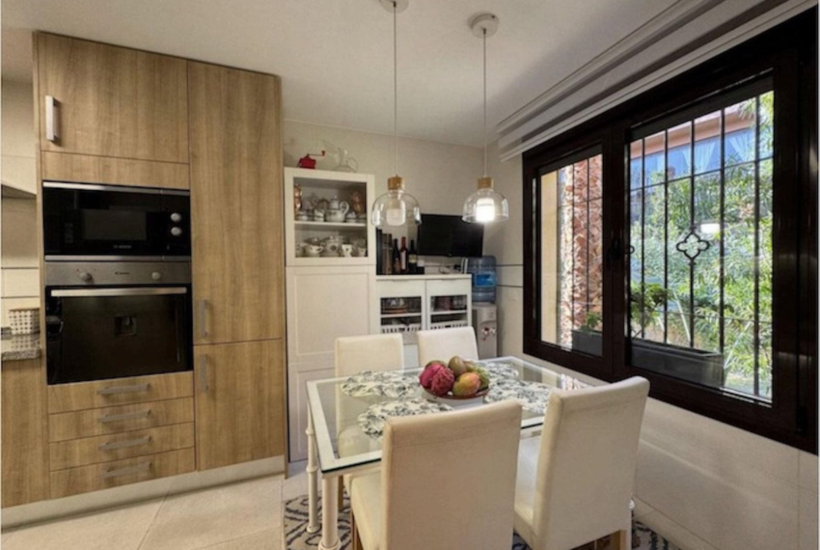 Discover your new home in Estepona! Enjoy stunning sea views from above. This charming three-story townhouse offers an ideal space to enjoy life on the Costa del Sol. With 240 m² built and 200 m² of living space, it features a private garage and additional parking for another car. On the ground floor, a welcoming living-dining room connects to an enclosed terrace, perfect for relaxing. A modern kitchen and a guest toilet complete this floor.