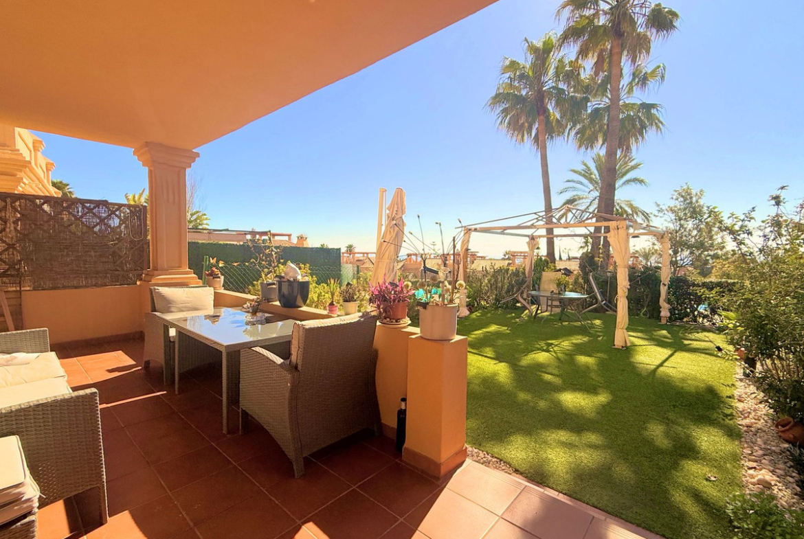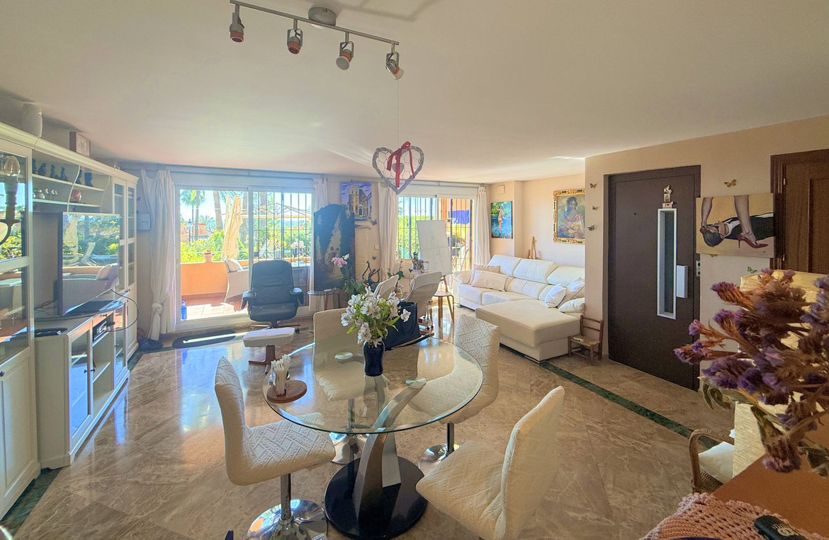 SEMI-DETACHED HOUSE JUST 300 METRES FROM THE SEA. Located in a quiet and private residential community between Estepona and Puerto de la Duquesa, and just a 5-minute walk from the beach, this attractive 3-bedroom semi-detached house offers an excellent combination of comfort and a privileged setting.