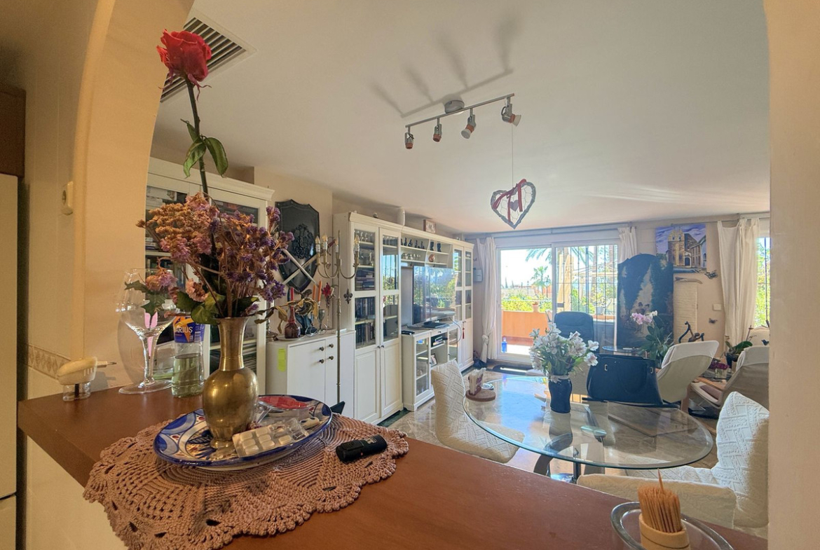 The complex stands out for its beautifully maintained gardens with tropical palm trees and a spectacular lagoon-style communal swimming pool, creating a relaxing and exclusive atmosphere. In addition, the community also features a paddle tennis court, providing the perfect space to enjoy sports and leisure without leaving home.