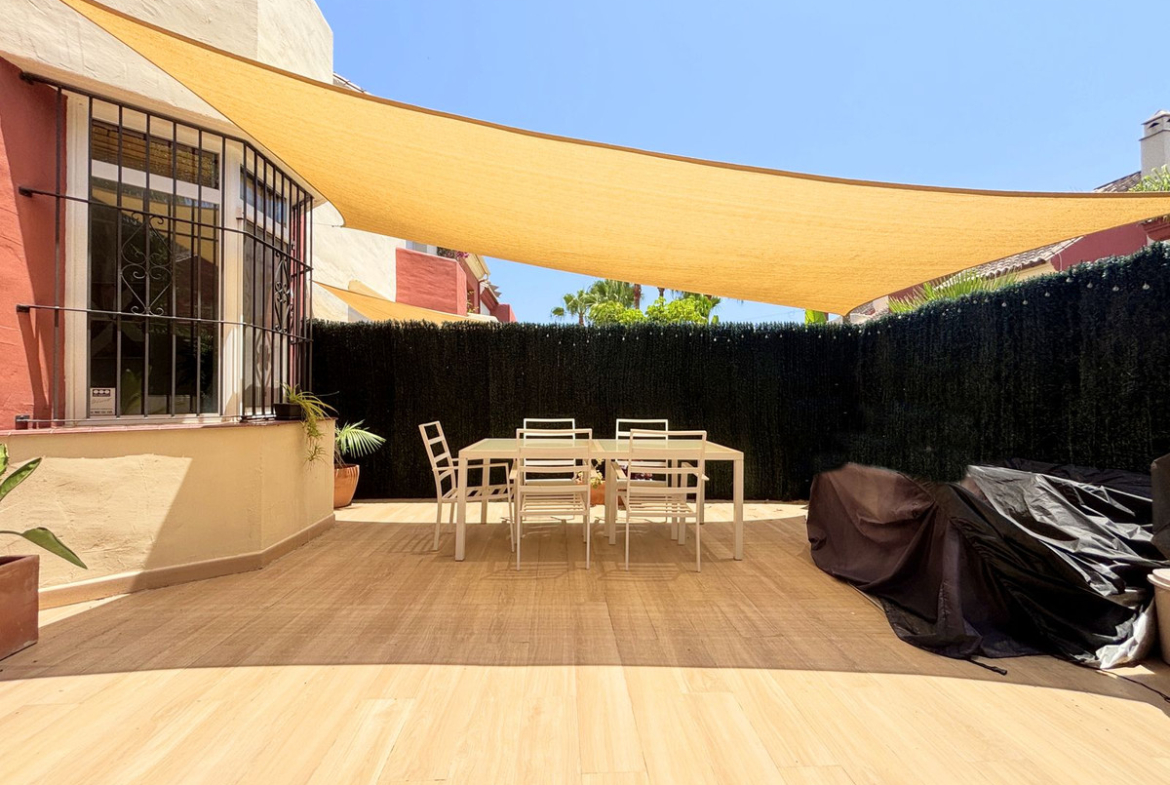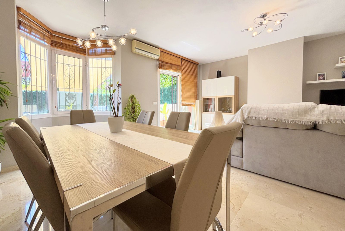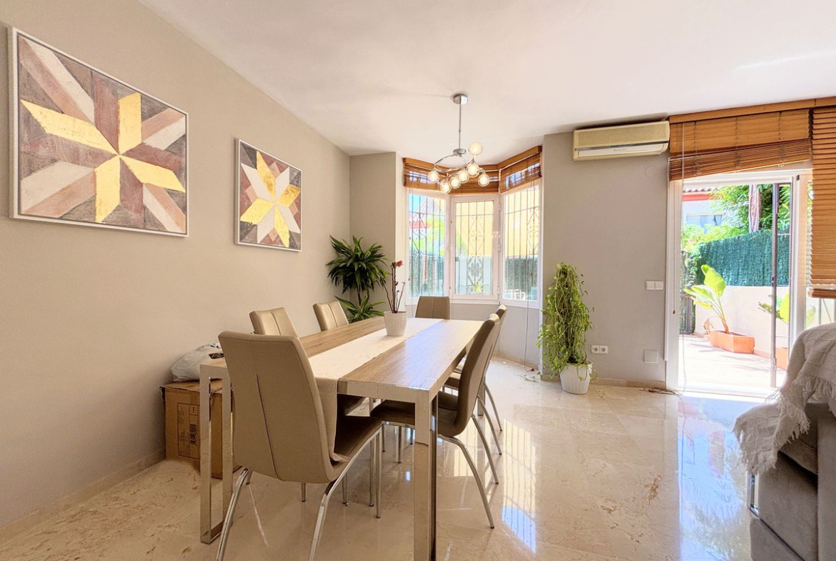 Located in a peaceful residential development in Estepona, just a few minutes' drive from all amenities, shops, and schools, this bright south-facing townhouse is spread over three comfortable levels — perfect for families or as a second home on the Costa del Sol.The basement level features a spacious 53 m² private garage, ideal for both vehicles and storage.The main floor offers a guest toilet, an independent kitchen, and a cozy living-dining room with direct access to a pleasant terrace, which in turn provides easy access to the communal areas and swimming pool — perfect for enjoying the Mediterranean climate.Upstairs, there are three naturally bright bedrooms and a full bathroom; the master bedroom also includes a small private terrace.The community is well-maintained and quiet, with a swimming pool and green areas, all with low maintenance costs.An excellent investment opportunity, whether for year-round living or as a high-yield rental during the peak season.Don’t hesitate to come and visit!