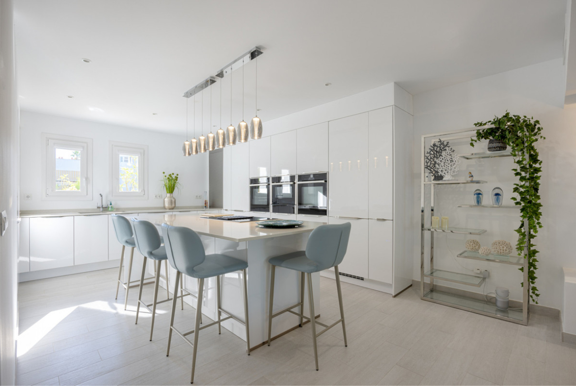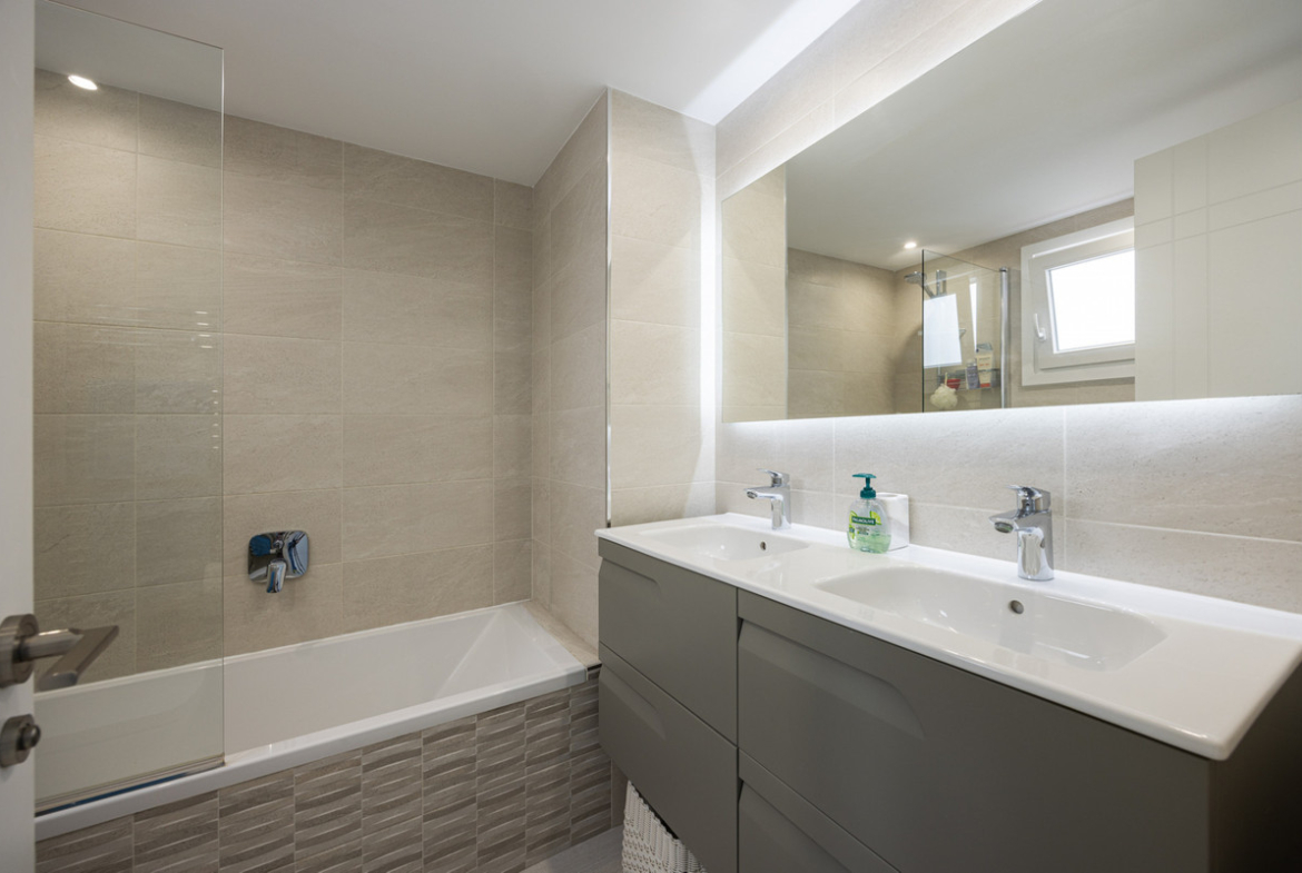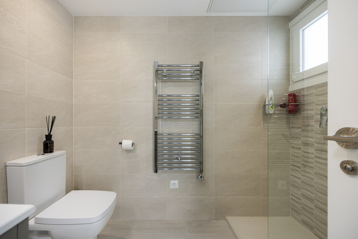 This beautifully renovated townhouse offers modern design and comfort. It includes three bedrooms, two bathrooms, and a guest toilet. The master bedroom has an ensuite with underfloor heating, which is also available in the guest bathroom.