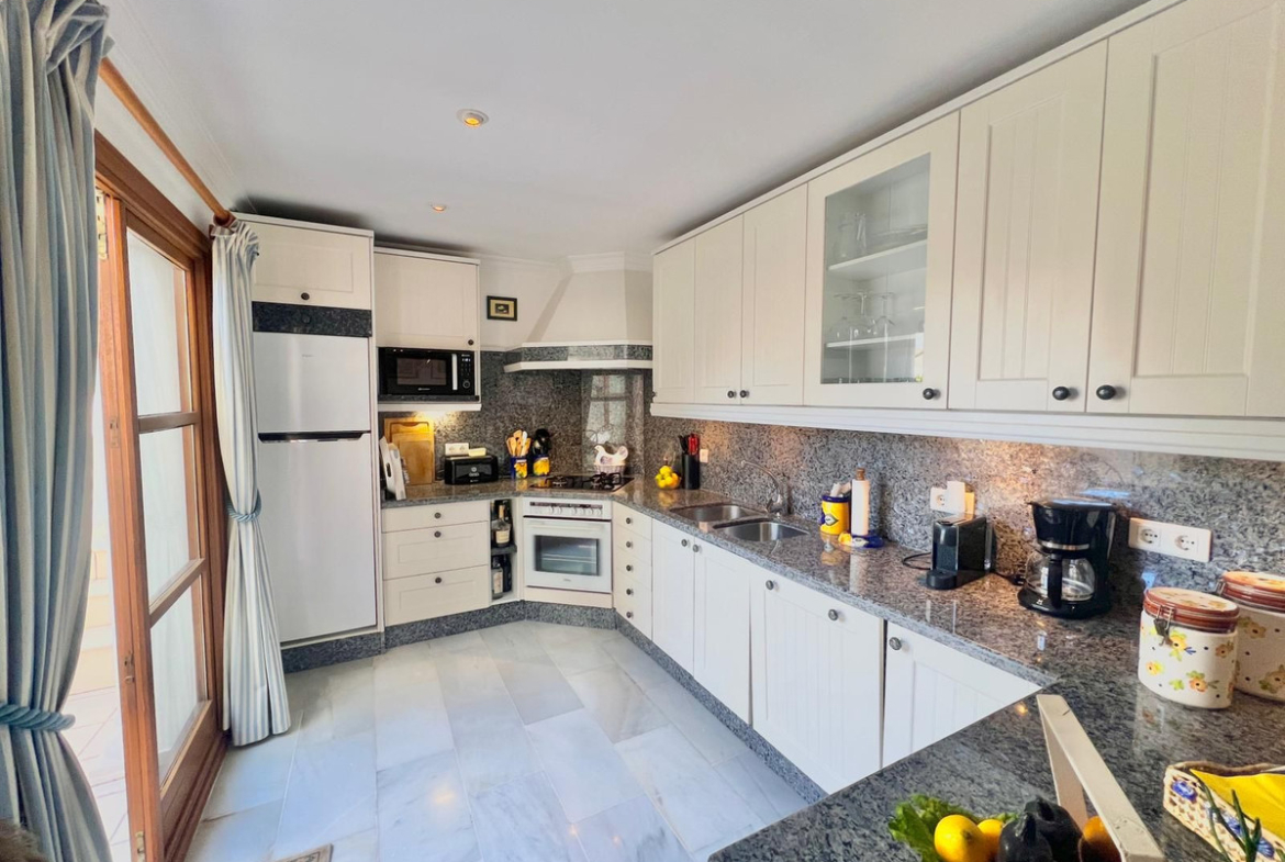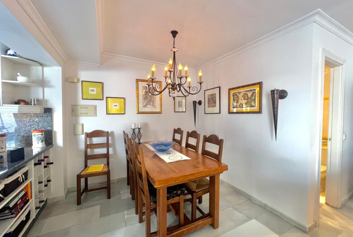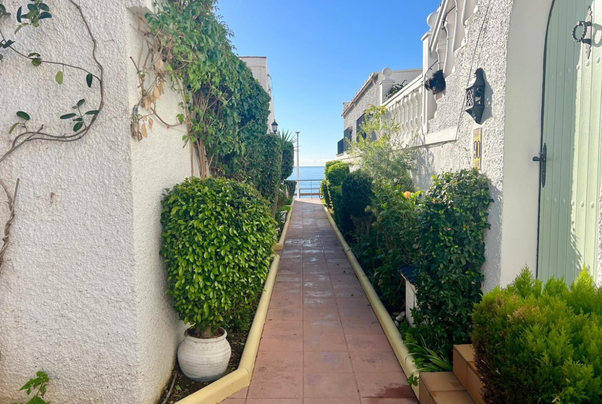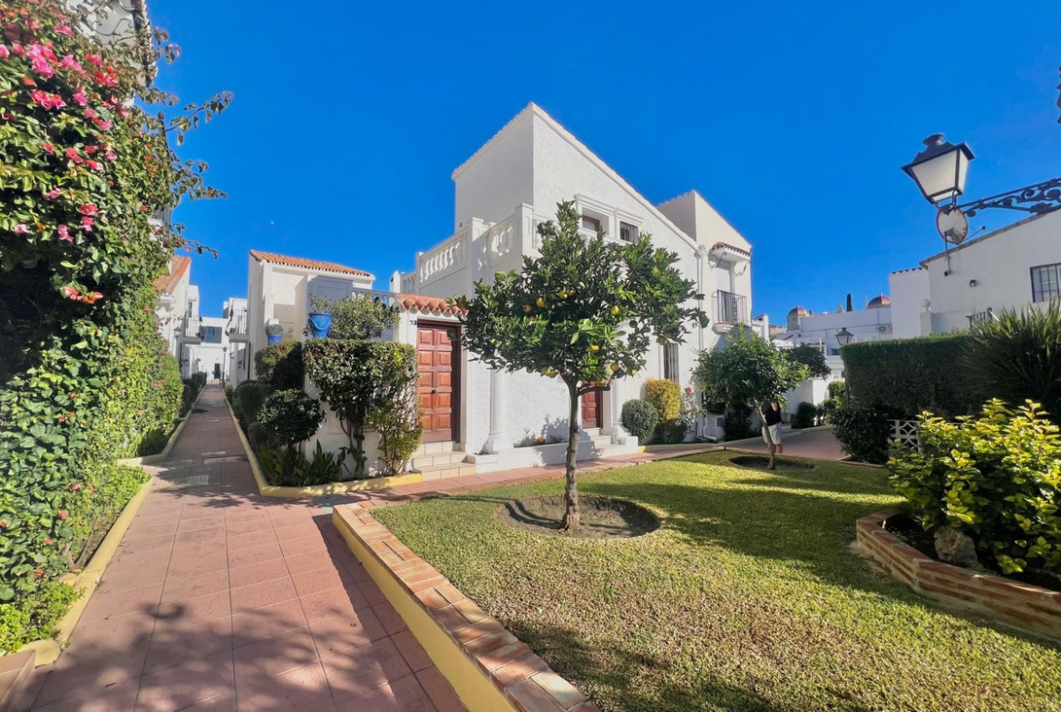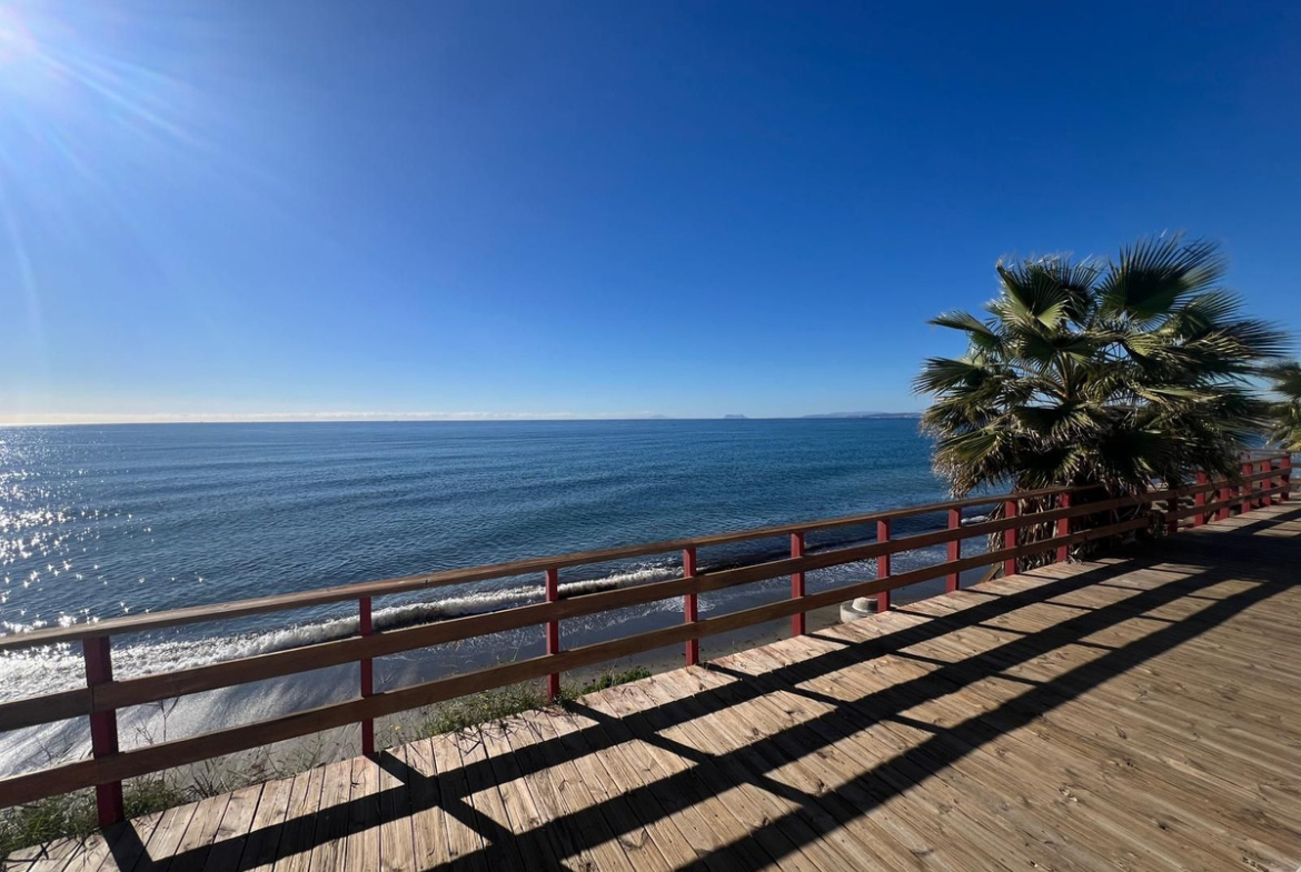 Beachfront complex in Estepona, New Golden Mile, between Cancelada and Selwo, close to Las Dunas. Stunning fully renovated corner semi-detached townhouse, located in a frontline beach complex with a unique charm, reminiscent of an authentic fishing village, full of character and tradition. The location is exceptional: just 50 metres from the promenade and the beach, 5 minutes from Estepona town centre and 10 minutes from Puerto Banús. A peaceful setting where the sound of the waves accompanies everyday life. An excellent beach restaurant is also located only 50 metres away. The property was completely renovated in 2003 in an elegant Spanish–Scandinavian style. The terraces benefit from enhanced insulation and are fitted with new double-glazed windows in Brazilian hardwood. Central gas heating with a gas fireplace. The house offers 3 bedrooms and 3 bathrooms, including one bedroom and one bathroom on the ground floor, a large fully fitted kitchen, a comfortable living room and a beautiful patio, ideal for entertaining. The property also includes four storage rooms. On the upper floor, there are two double bedrooms with en-suite bathrooms, as well as a magnificent rooftop terrace offering a high level of privacy and breathtaking panoramic sea views. A newly developed promenade and a nearby bus stop provide easy access, making a car not essential. Viewings are highly recommended.