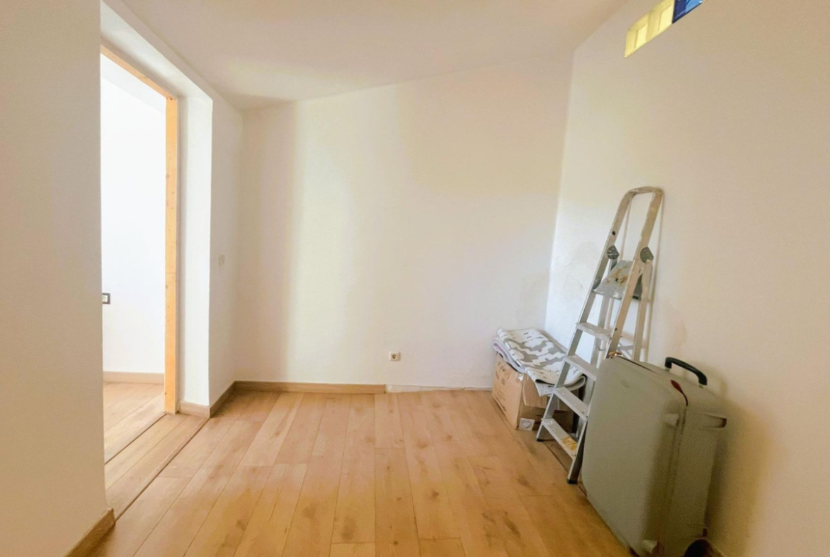 On the ground floor, a spacious living room with fireplace welcomes you in with warmth, leading to an open-plan kitchen and dining area, ideal for everyday living. From here, you access a private patio and terrace, a charming outdoor spot where you can enjoy sunny breakfasts, quiet afternoons or relaxed dinners with friends. Picture a chill-out area, an urban garden, or a peaceful place to unwind in total privacy.