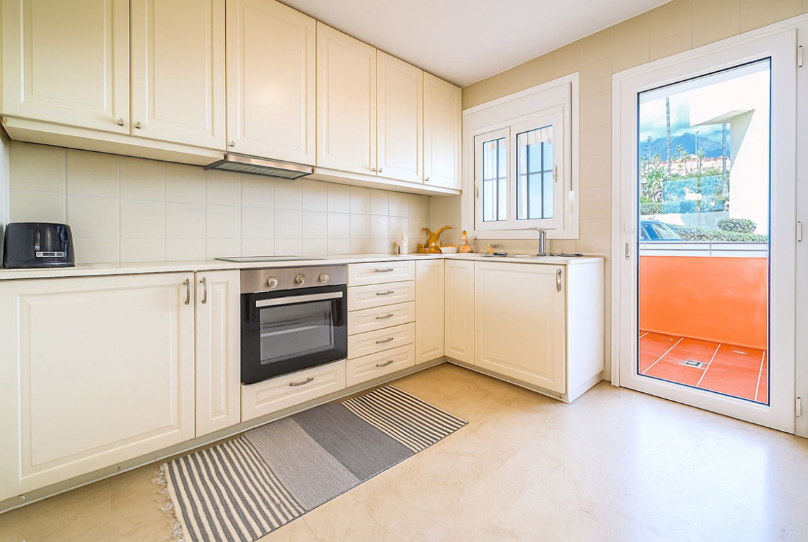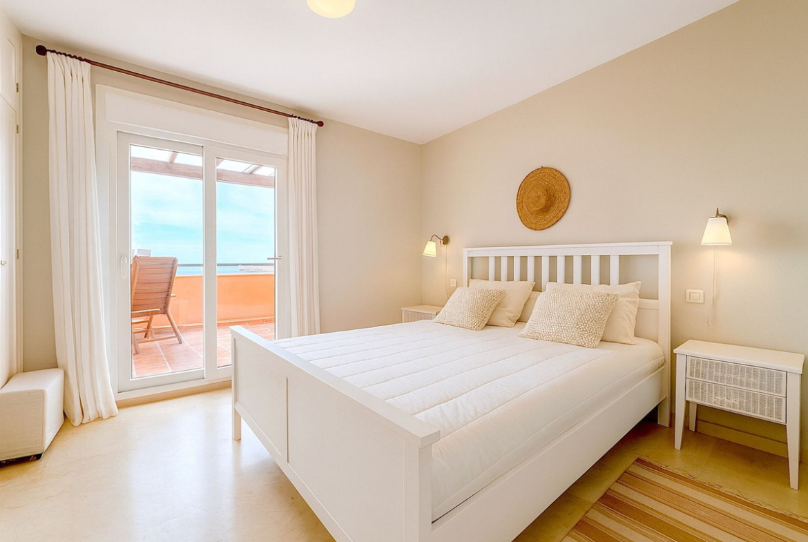 This is a fantastic property situated in Bermuda Beach, in an enviable front line beach position offering panoramic sea views. The property is currently being renovated to a very high standard including a new Italian kitchen, bathrooms in a modern contemporary style and new windows. The resulting effect is stunning and makes a perfect luxurious family home. The views can be appreciated from the moment you enter the property giving the “wow” factor. The kitchen and living room areas has been made into an semi Open-plan format making it much more spacious. There is ample space on the terrace which leads off from the living room – enough for sun-beds as well as a large dining table and chairs. Upstairs are the bedrooms with the Master bedroom having an ensuite bathroom and its own spacious balcony with those incredible sea views and two further guest bedrooms sharing a bathroom. There is a private space for the car and there is a supermarket and restaurants within easy walking distance and it is only 10 minutes by car to arrive at the town of Estepona. A great value for money property in an unbeatable location.