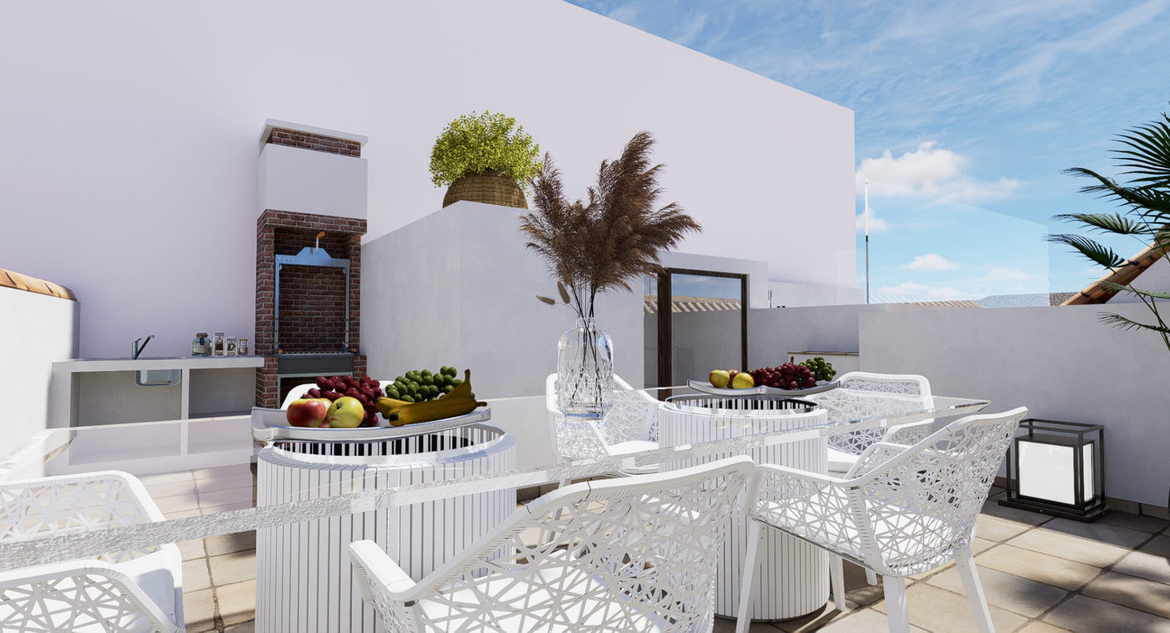 Tucked away in the enchanting Old Town of Estepona, along picturesque cobblestone streets and overlooking a charming plaza, this exceptional corner townhouse is a brand-new construction, currently being built and designed to the highest standards of craftsmanship, comfort, and contemporary architecture.