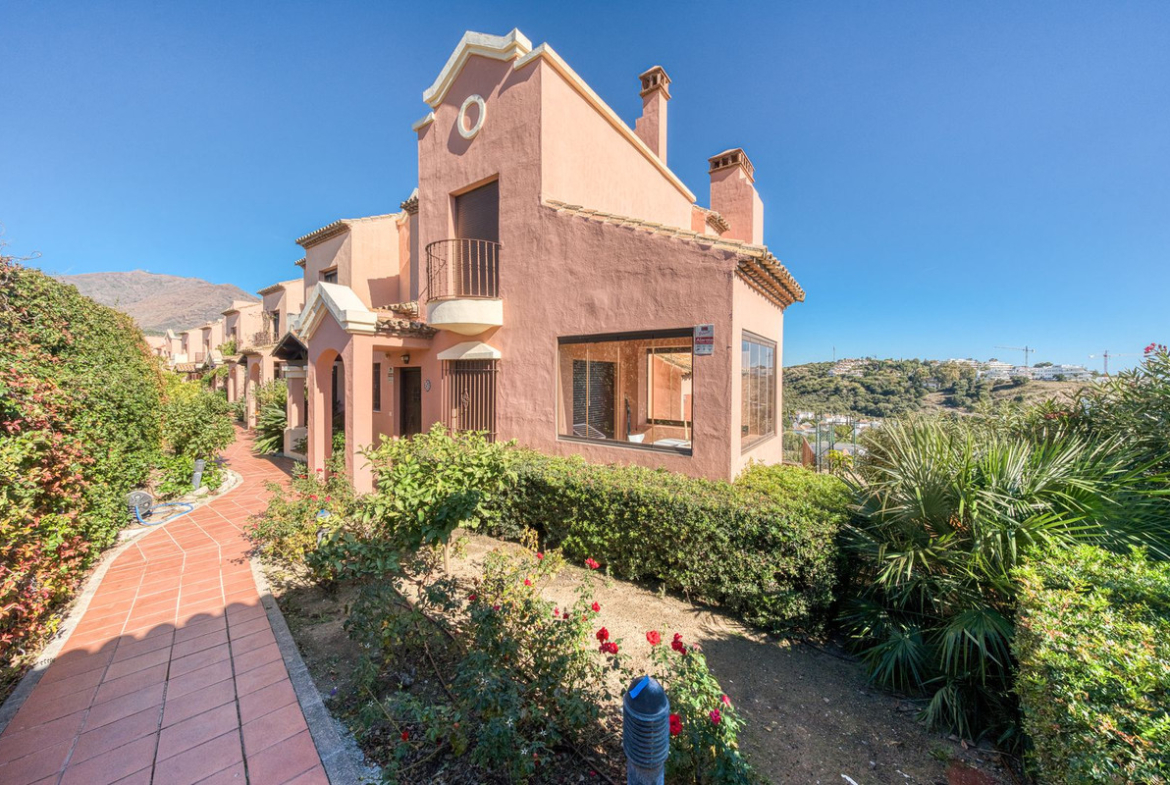 Cosy townhouse 3bed 3bath in Estepona, near Laguna Village. Townhouse has a private garden, solarium, terrace. Urbanisation has a communal pool. Facing: South and West