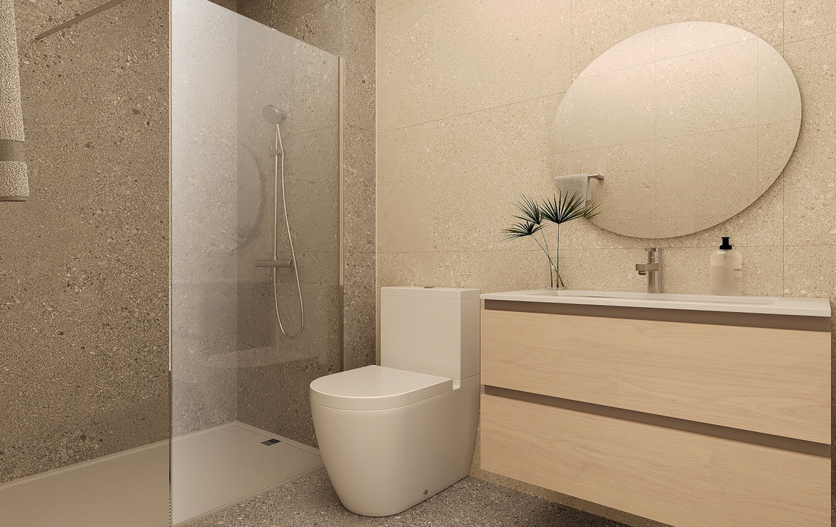 The 2- and 3-bedroom apartments, which have 2 bathrooms, and the 3-bedroom terraced and detached houses / villas which have 3 bathrooms, are carefully laid out and offer beautiful views over the communal areas, the swimming pool and private gardens, the surrounding natural environment and the Benidorm skyline. A number of properties also have sea views.