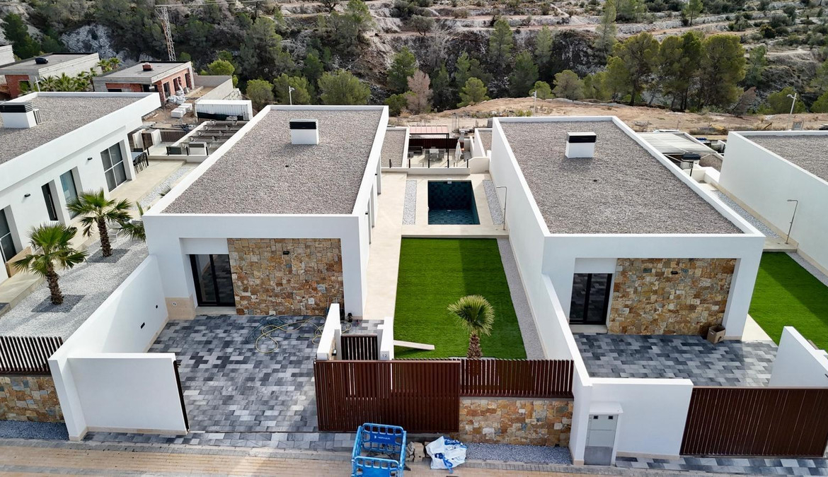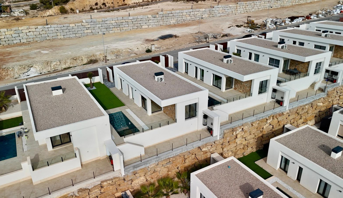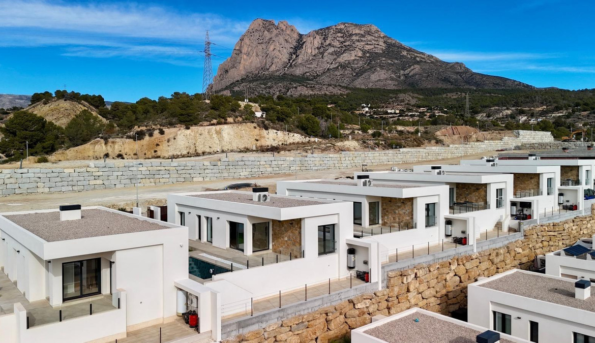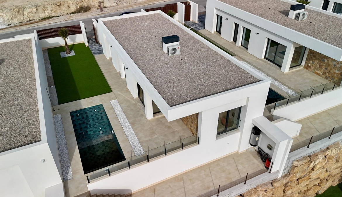 For sale: a modern villa built in 2025, located in the prestigious area of Finestrat. The property features a stylish contemporary design, high-quality materials, and is fully ready to move in with no additional investment required.The villa offers 3 spacious bedrooms, 2 bathrooms, a 300 m² plot, a private pool, a well-maintained garden, and parking for two cars. Large windows and the terrace provide stunning views of the sea and mountains, creating a perfect atmosphere for comfortable and peaceful living.The area boasts excellent infrastructure, including supermarkets, the La Marina shopping center, schools, restaurants, sports facilities, and golf courses, as well as great transport connections with quick access to Benidorm, Alicante, and the airport.An ideal option for both permanent living and a high-yield investment.