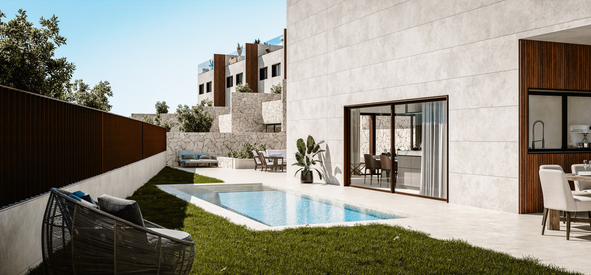 Each home has a private pool and a beautiful garden, perfect for enjoying the good weather all year round. From the solarium, you can admire spectacular views of the sea while you relax. In addition, you will have a versatile semi-basement, ideal for converting into a leisure room, gym or work space.