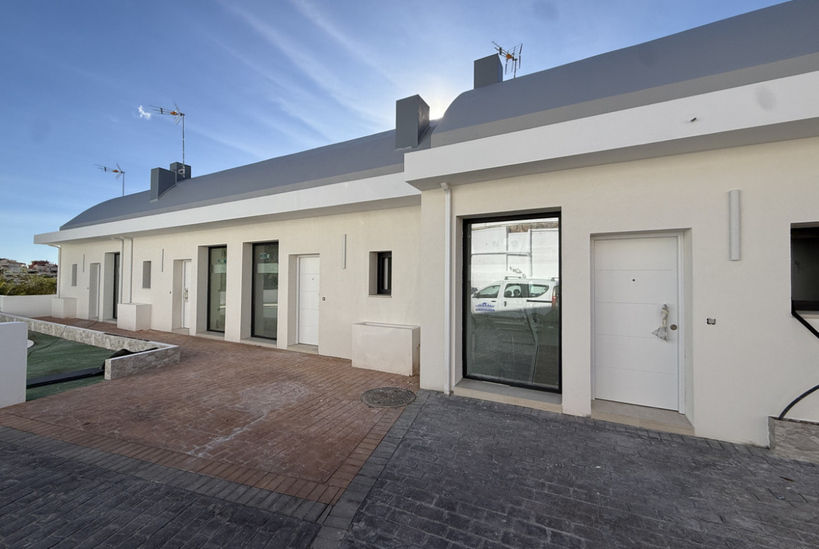There are under construction four semi detach-style villas, of which only one is for sale. This elegant villa has three bedrooms, three bathrooms (two of which are en-suite and a separate toilet with underfloor heating), a spacious American kitchen, a dining area and a large living room. The house is on three levels and has wonderful sea views from all floors. Construction is well underway and is expected to be completed by the end of 2025.