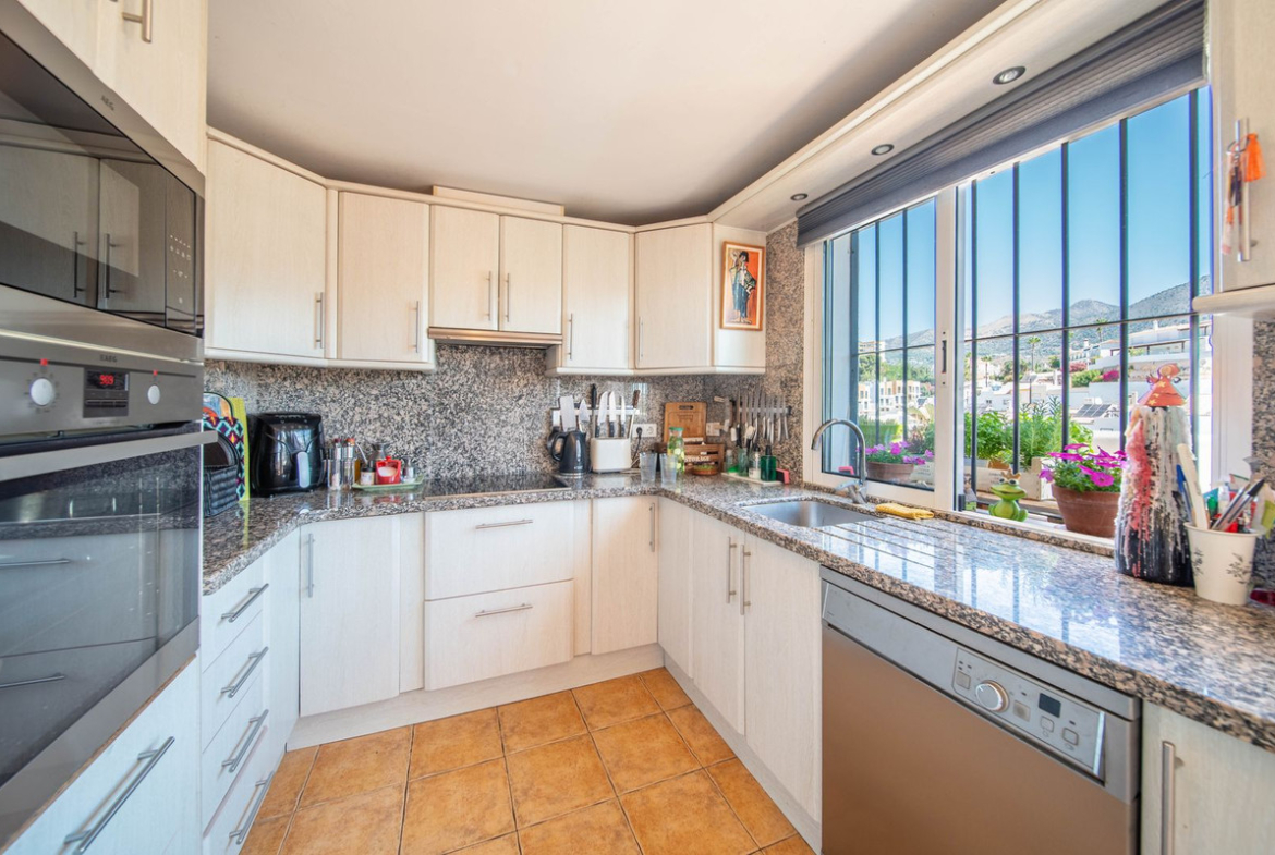 On the main level, you will find a guest toilet, living room and kitchen with access to a beautiful terrace boasting stunning views.