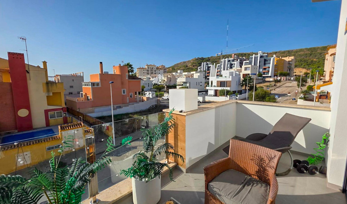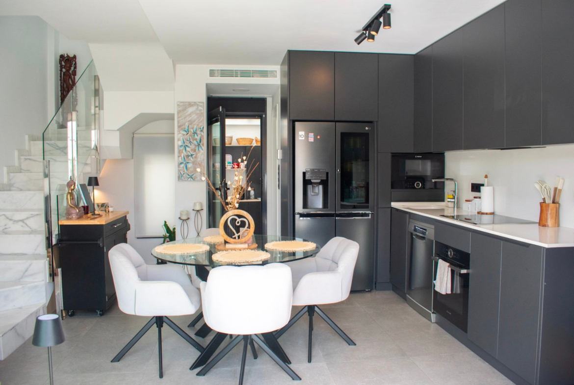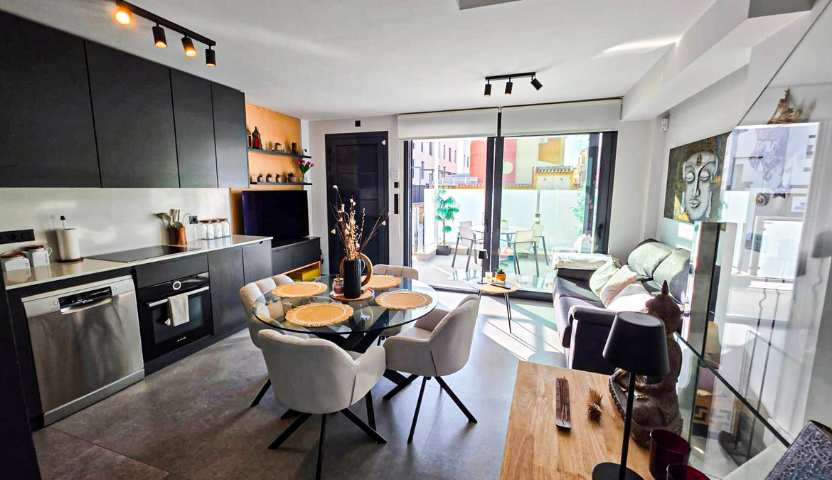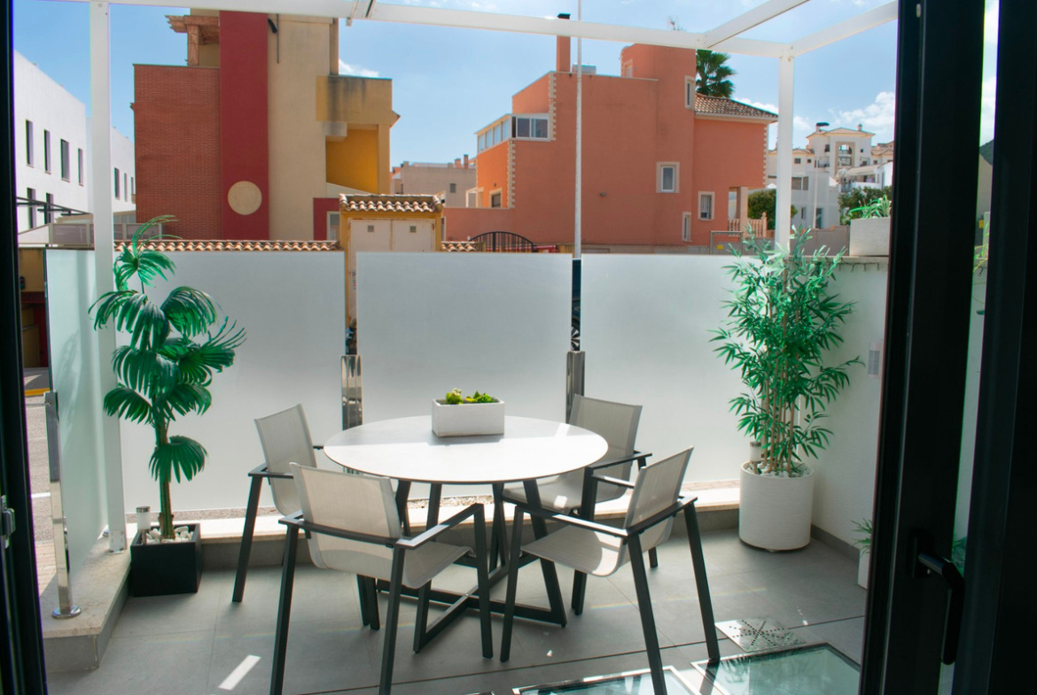 Discover this elegant townhouse , located in one of the most exclusive areas of Guardamar del Segura , on the Costa Blanca . With a contemporary design and high-quality finishes , this property combines modern comfort with Mediterranean charm.