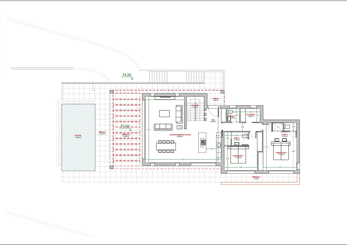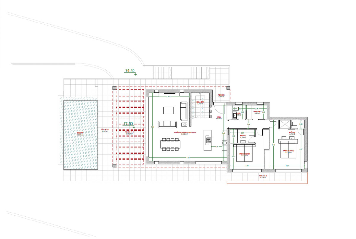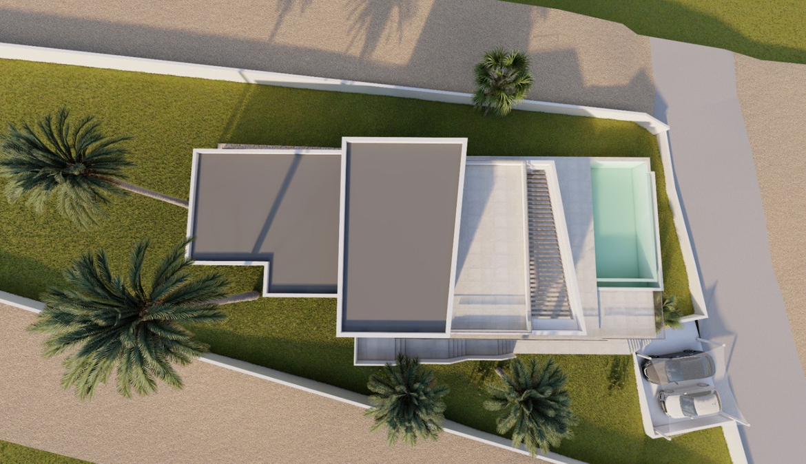 Located in the prestigious residential area of Villes del Vent, this plot of over 1,100 m2 is a blank canvas waiting to be transformed into your ideal home. The current project proposes a villa with 3 bedrooms and 3 bathrooms, each designed with comfort and luxury in mind. The “open-plan” design of the living room and kitchen creates a spacious and welcoming environment, perfect for family enjoyment or entertaining guests. The large glass sliding doors open onto an impressive terrace, where a private pool invites you to immerse yourself in the tranquility of your new home.