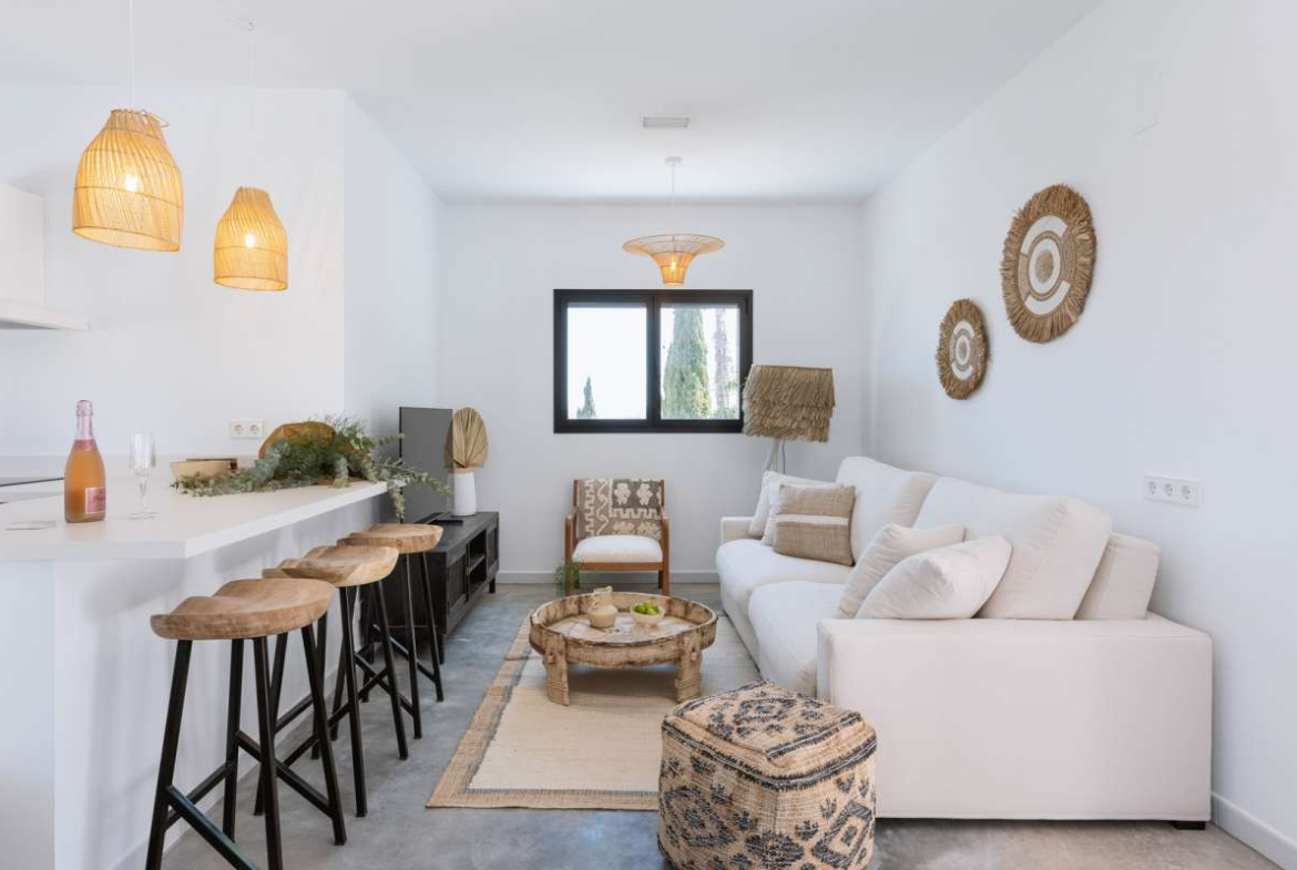 This pretty villa offers amazing views of Javea, its bay, and the sea. It has 3 bedrooms, each with its own bathroom.The villa has two floors, and each one has a big covered terrace where you can enjoy the beautiful views.When you arrive at the top floor, you'll find a nice open space with a kitchen, a dining area, a bedroom, and a bathroom. Downstairs, there are two more bedrooms, each with its own bathroom, and a toilet for guests.Outside, there's a terrace with a private pool and a garden with some lovely olive trees and cozy spots to sit.The renovation of this property is soon to be finished. In addition you have the option to buy it furnished with all new furniture.