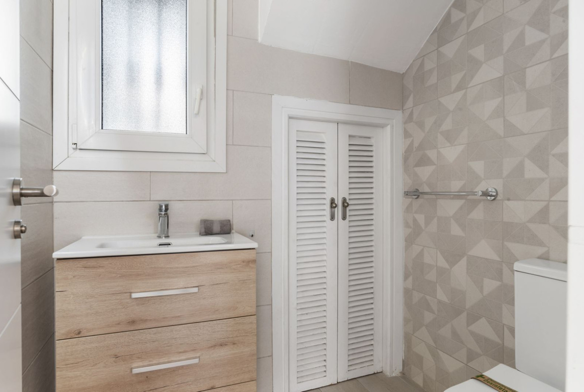 On the first floor, there is the master bedroom with its own bathroom. This bedroom has a small terrace with beautiful sea views. On this floor, there are two more bedrooms and a bathroom.