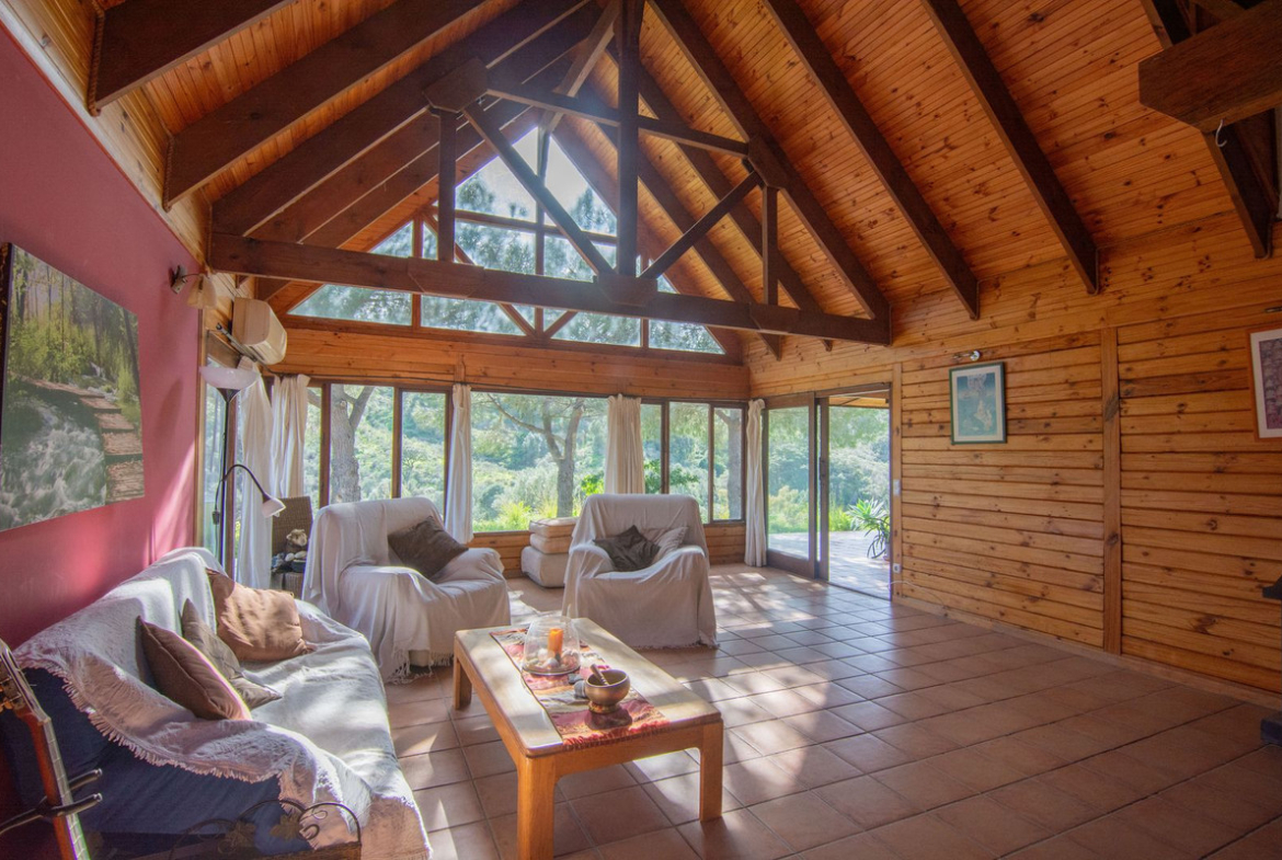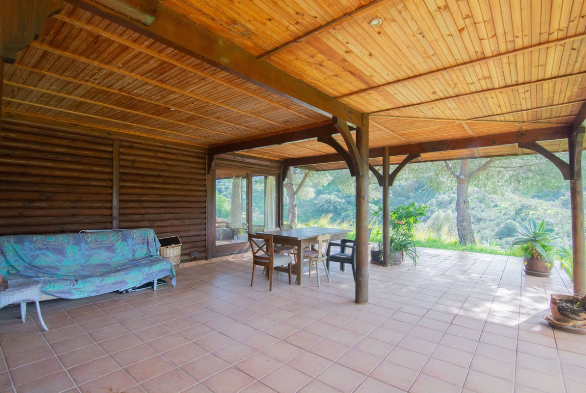 This charming finca, located in Mijas Costa, offers a solid wooden house with stunning open views of the surrounding mountains. Nestled in a protected natural area between La Cala Golf and La Mairena, the property is fully fenced and includes facilities for up to 4 horses, with boxes, a riding arena, and a tack and hayloft. The main house features 3 spacious bedrooms, each with an en-suite bathroom, and an open-plan kitchen and living area. Additional amenities include air conditioning, a fireplace, solar panels, water tanks, and a small cabin. The plot spans 6,200 m², offering both privacy and natural beauty.