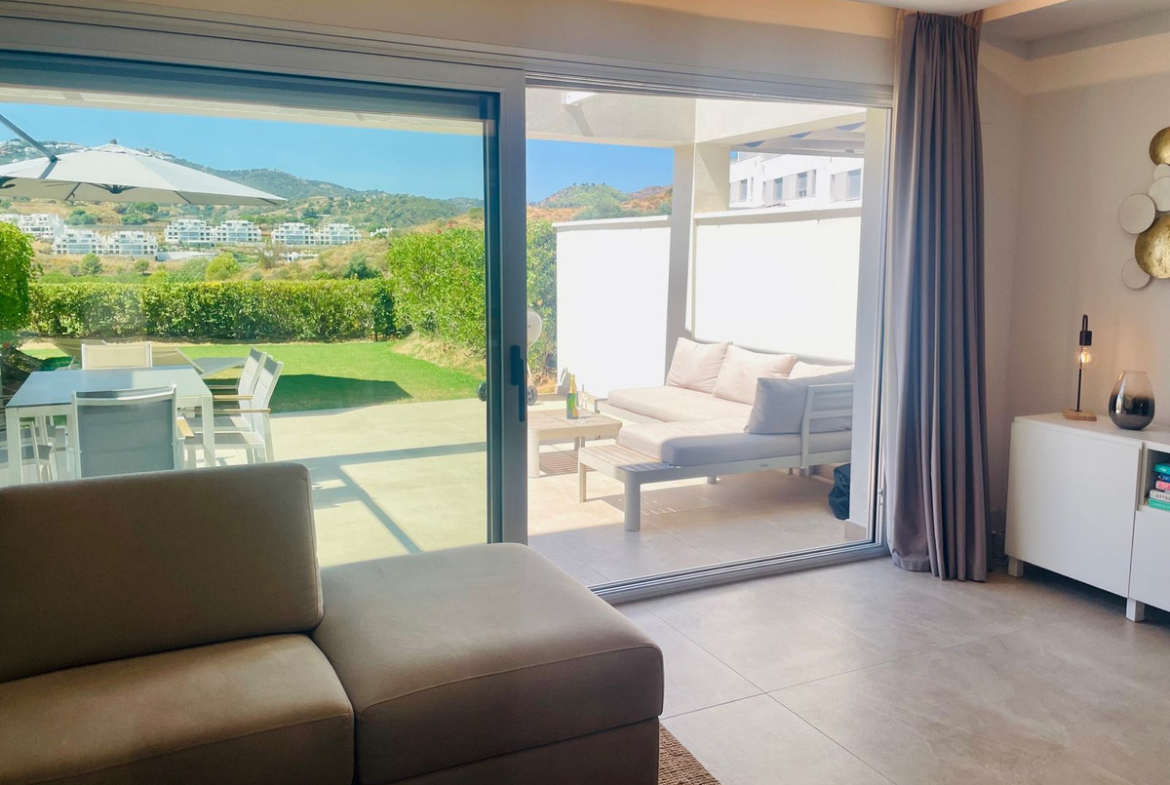 Built by a renowned British developer, the property is located in the exclusive, gated community of NATURA – a small and very private complex with only 40 residential units. The communal facilities are immaculately maintained and offer spacious garden areas, a large swimming pool and a separate children's pool. Nestled in the rolling hills of La Cala de Mijas and with direct access to the golf course landscape, you can enjoy absolute peace, security and Mediterranean flair here.