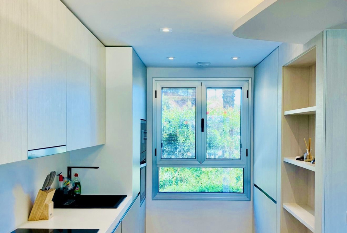 Upstairs you will find 3 bedrooms and 2 modern bathrooms with showers. The master bedroom features a dressing area, plenty of light and direct access to the bathroom with a view. On the ground floor, you will find an open-plan, fully equipped kitchen with breakfast bar, an integrated, bright living/dining room with access to the private garden terrace and a guest WC.